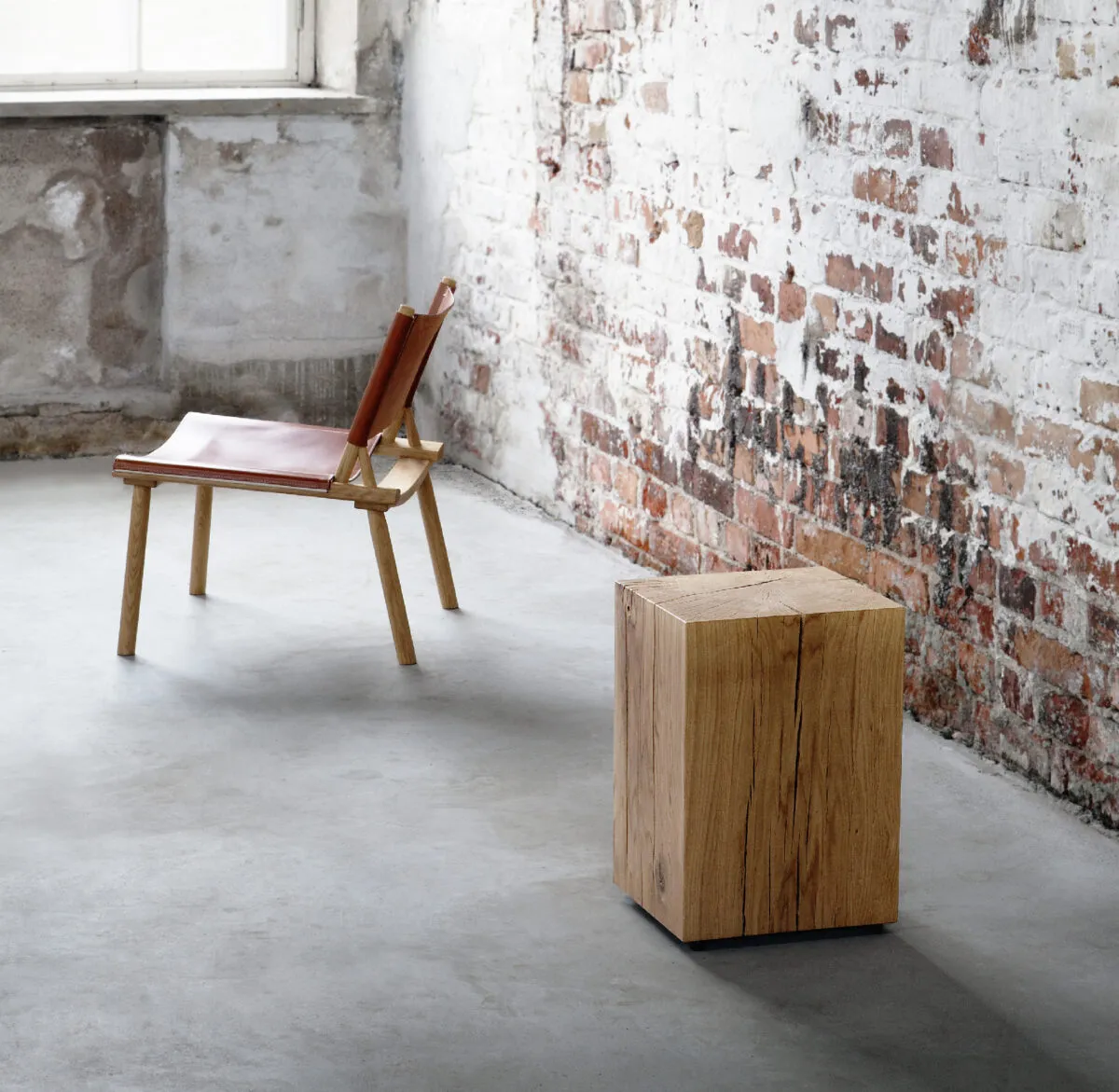 The Biennale stool-table was made for the Architectural Biennale of Venice, as something that can be found in many Finnish cottages or homes. Naturally the Biennale stool-table is bigger and heavier, and the finishing is made much more carefully than the chunks usually found at private homes. Biennale is made of solid oak, and it is meant to have cracks, wormholes, unevenness, and knots, making each piece unique. It will also move and continue its life during the years; changing its shape more or less. The careful craftsmanship work makes every piece a one-of-a-kind work of art.