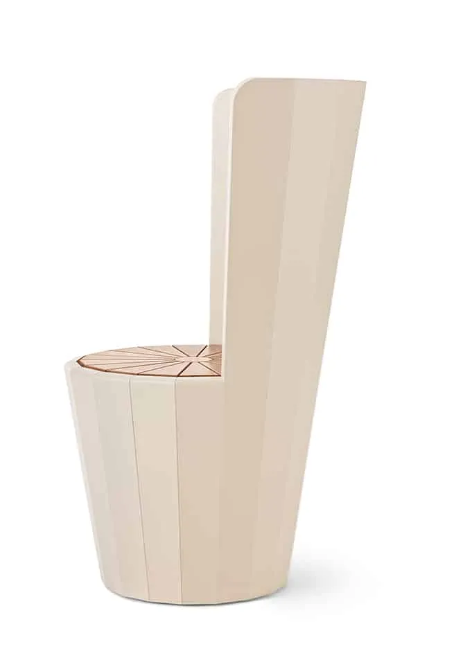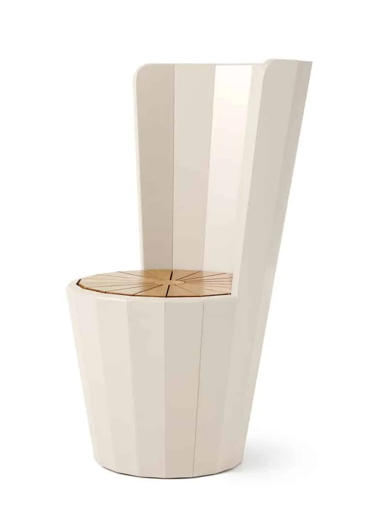 Bill is a new type of armchair made for public spaces. Similar to the circular Bill Post notice board launched in 2011, the armchair’s round shape and high backrest give it a unique character seldom seen in public furniture. The wooden strips are positioned at angles that catch the light and form contrasts, creating a unique effect. Bill works perfectly as part of a group, but can also be placed on its own to create a dynamic focal point. The swivel seat enables those seated to turn towards each other to engage in conversation, or subtly swing away when privacy is needed.