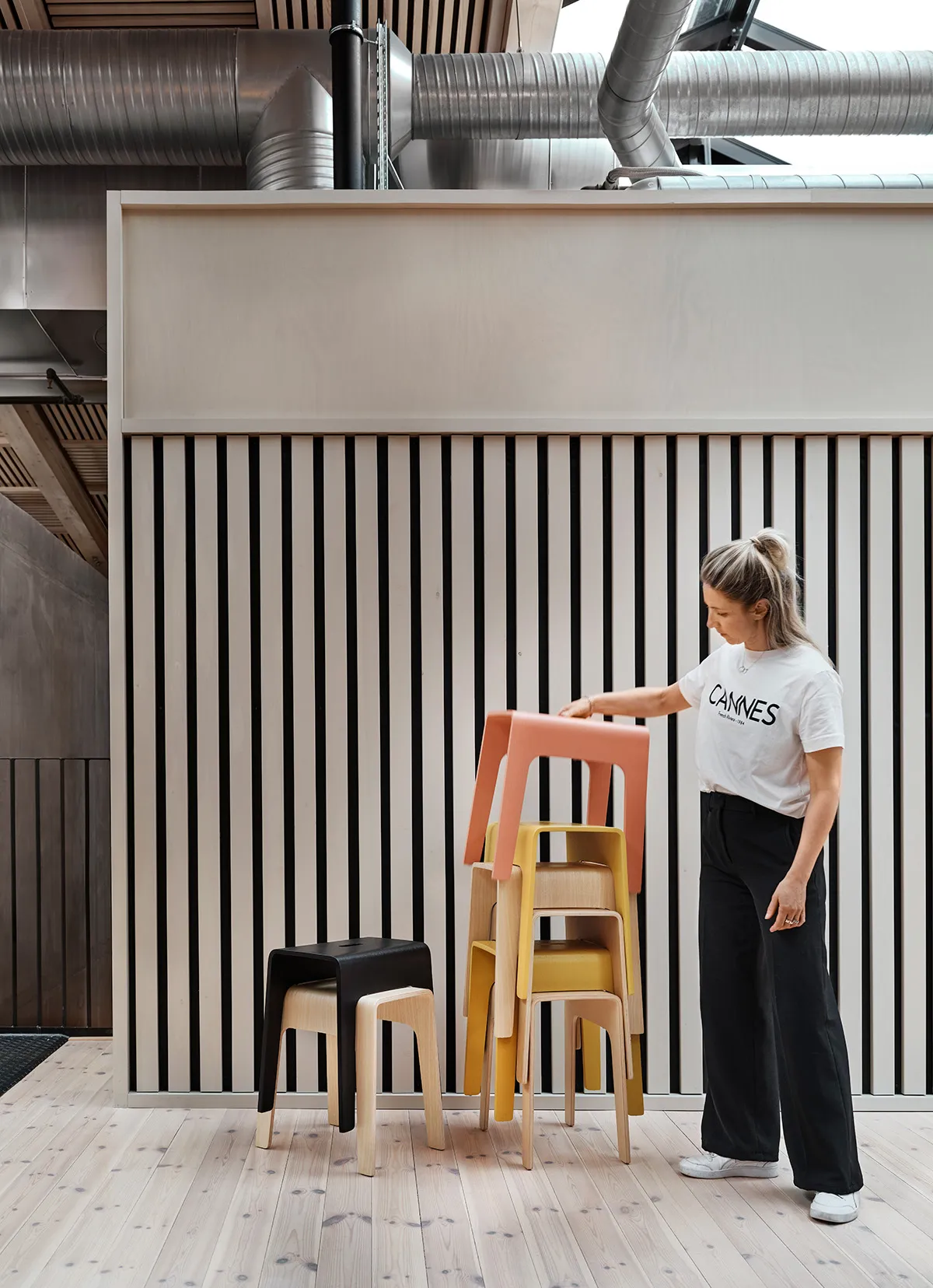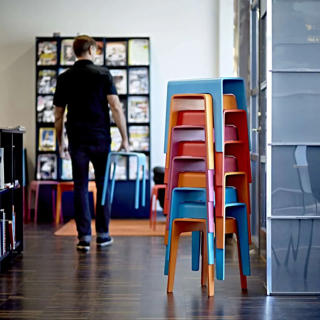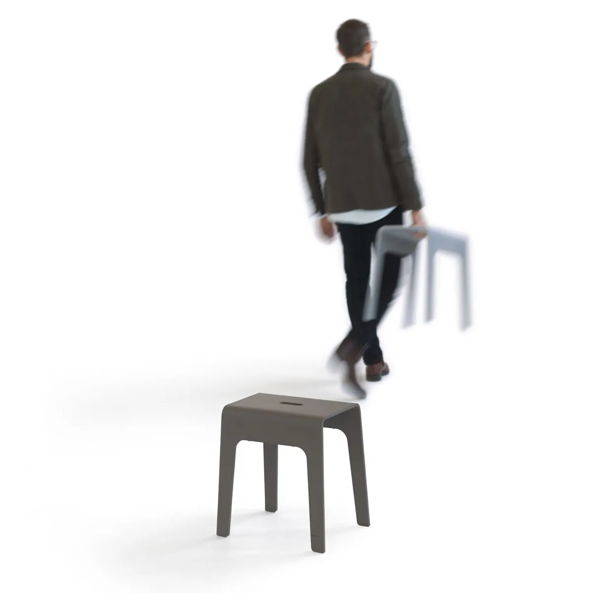 Congratulations and thanks for 30 active years in the name of service and we know there will be many more to come! Bimbo is a stackable stool made of compression moulded wood. A cut out hole as a handle makes the stool easy to move around. Bimbo can be used almost anywhere one needs a temporary little place to sit or something to balance a foot on when one can ́t quite reach and, of course, as a movable small table.