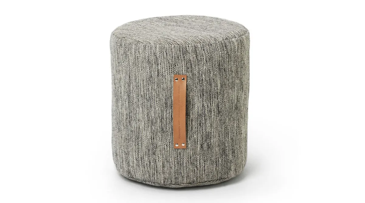 The Björk stool, or pouf, is based on a weft in wool, combined with details in leather. The expression in the woven structure is inspired by the black and white trunk of the birch tree (‘Björk’ in Swedish) and the leather represents the inside of the bark. The Björk stool is available in two sizes.