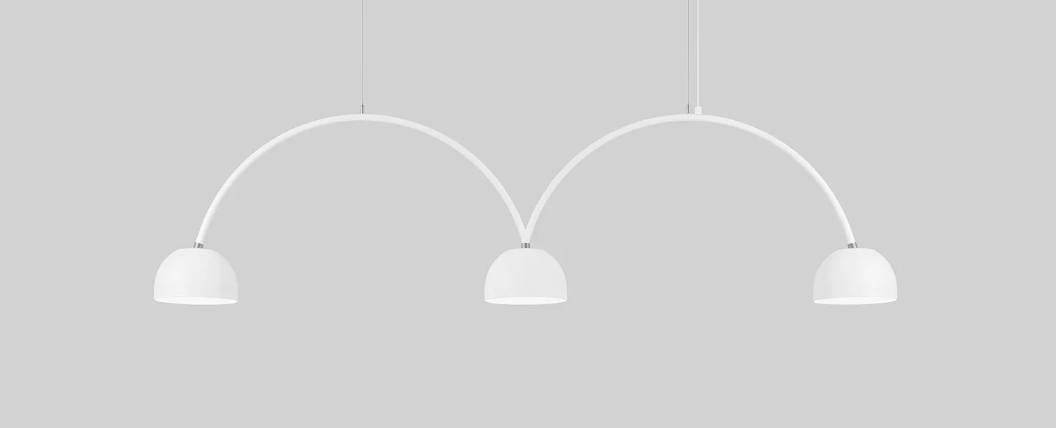 New for 2020, this fixture is now available as a bow that billows over the BOB sofa. The distance between the lights follows the same mathematics as the sofa modules. This new version works well over sofas, in corridors, above conference tables, etc. Lenght 2337 mm. Height 585 mm.