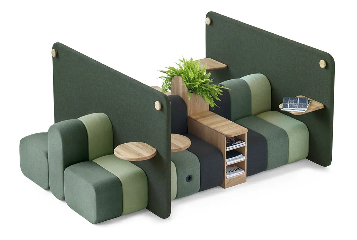 If BOB is the ultimate sofa system with an unsurpassed buildable flexibility that can adjust to whatever space and endow it with character, then BOB JOB is the crowning feature: the possibility to cater to any imaginable need. Add-ons in oak, ash, and stained variations together with six different padded partitions offers privacy and an abundance of different spaces in both offices and public spaces.