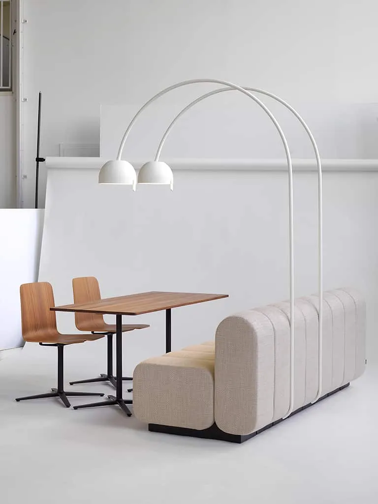 Alongside Bob Job at the Stockholm Furniture Fair we will be launching Bob Light in collaboration with Zero, a space-shaping lighting solution that can be integrated directly into the Bob backrest. The dimmable LED lamp nested behind the convex diffuser can be pivoted to create intimate and focused lighting. It is also available as a freestanding floor lamp and pendant. All three designs created for our modular sofa system Bob are available from Blå Station and the freestanding floor lamp and pendant can be purchased from Zero directly.