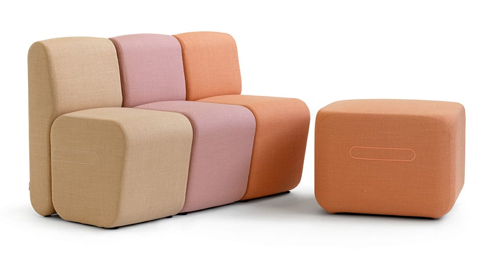 ”Compared to the sofa Bob, Bobby can also be used as a freestanding chair. The pouf can thanks to the improved magnets bind Bobby together in many different ways, or can terminate any sofa as a sideboard as well as an extra seat.”