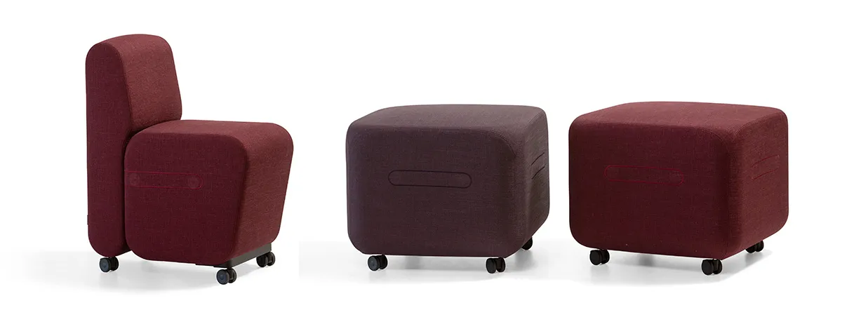 Maybe connected chairs should be separated and function as conversation chairs after the talk is over. Perhaps a room should change from the daytime activity to the evening events. Bobby is a chair, a sofa and more, always with magnets and now with the option of castors as well. Together with the puff Bobban, Bobby becomes even more flexible.