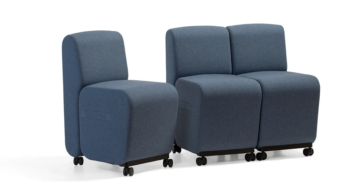 The smooth castors make this playful process even easier and highlights the core idea of the rearrangeable system further. The castors are lockable to ensure stability when a configuration is selected. The increased seat height makes it perfect for conference or hospitality areas.