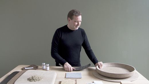 Mater has developed this innovative technology for press moulding many kinds of furniture. The technique allows efficient upcycling of industrial waste and, at the same time, reduces carbon emissions. For this collection, industrial waste from Grohe and BKI Kaffe get mixed with sawdust.