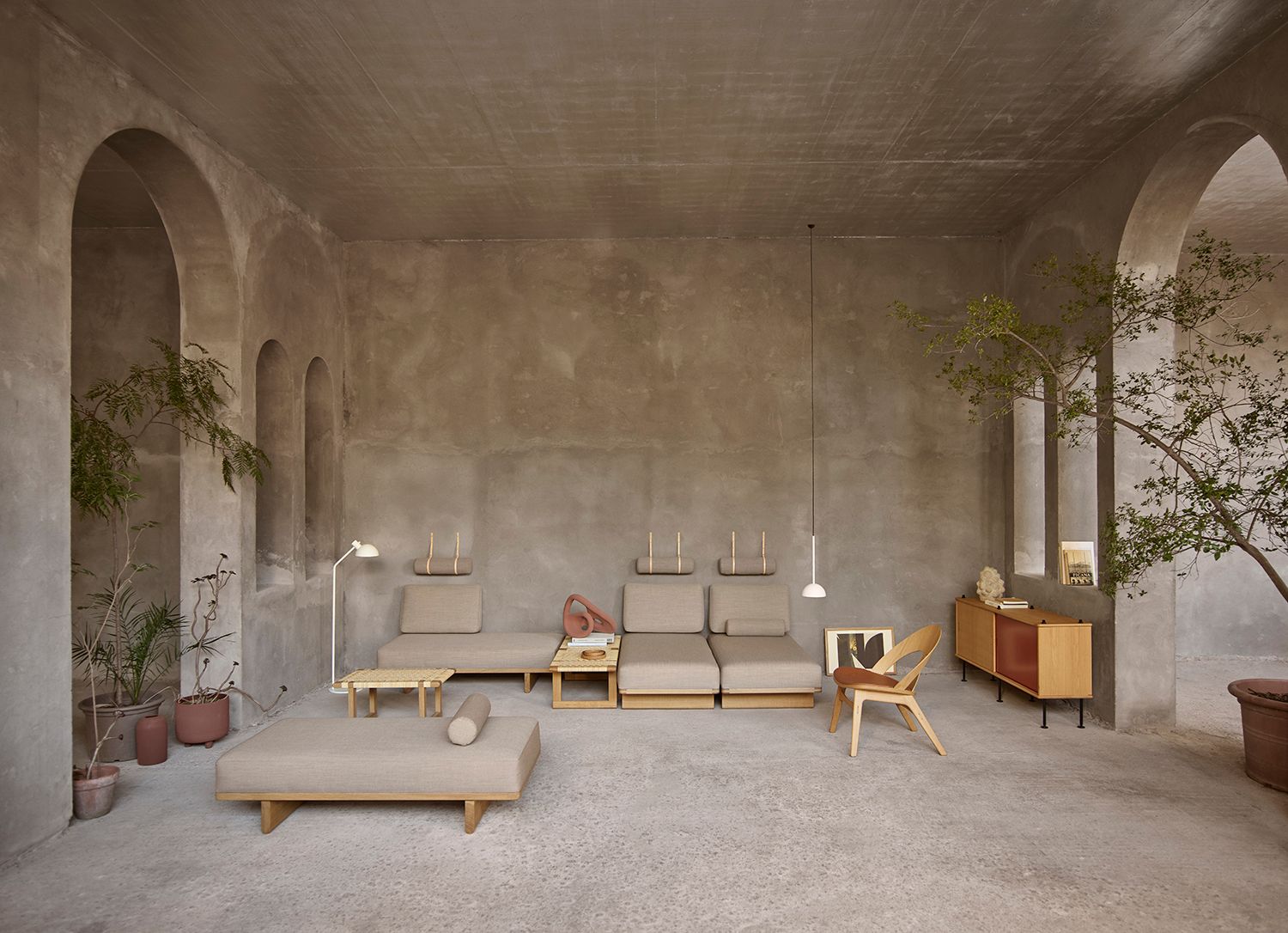 the same level as the soft surface of its cushions, the daybed forms part of Mogensen’s ‘building
