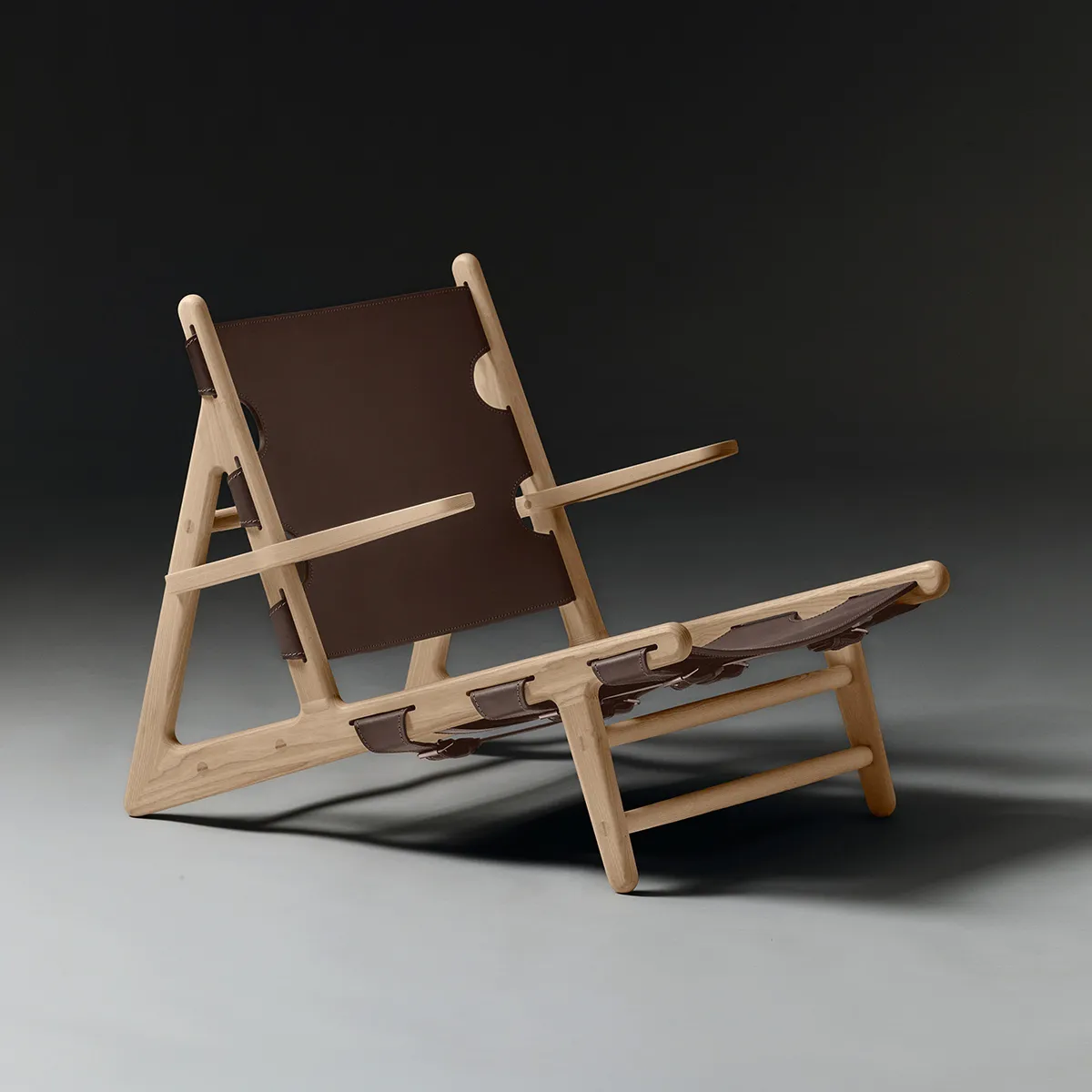Designed for the annual Cabinetmakers’ Guild Exhibition in Copenhagen, The Hunting Chair reflected Mogensen’s lifelong pursuit: to create furniture that connects to its surroundings, balancing utility, material honesty and human comfort. With its low, reclining stance, exposed wooden frame, and robust saddle leather, it was equally bold and functional, grounded in tradition yet unmistakably modern.