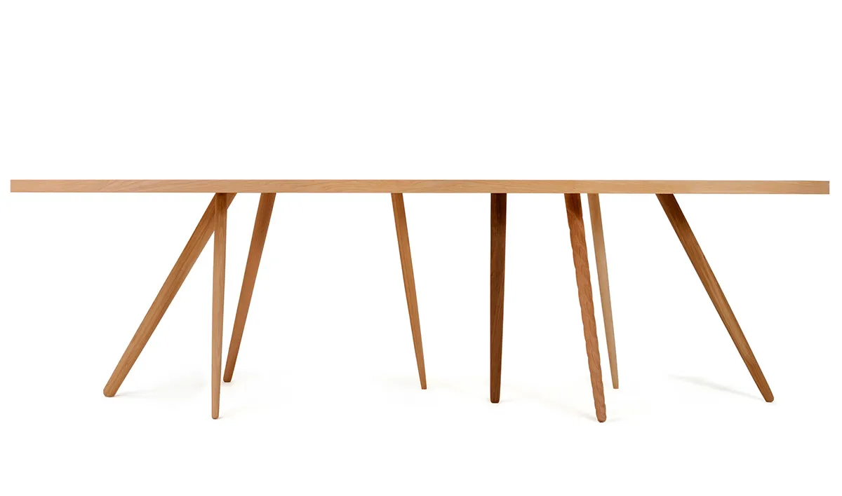 Pointe dining table featuring ballet-inspired tapered legs designed by Monica Förster for Zanat craftsmanship brand