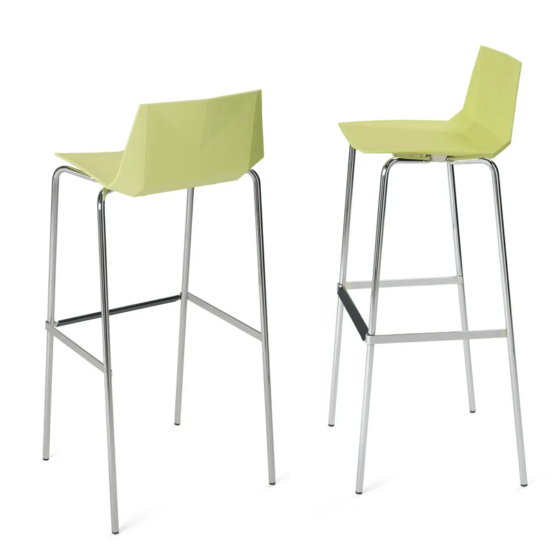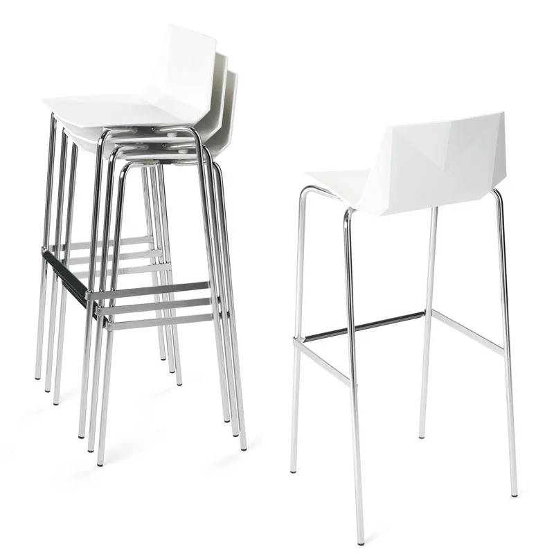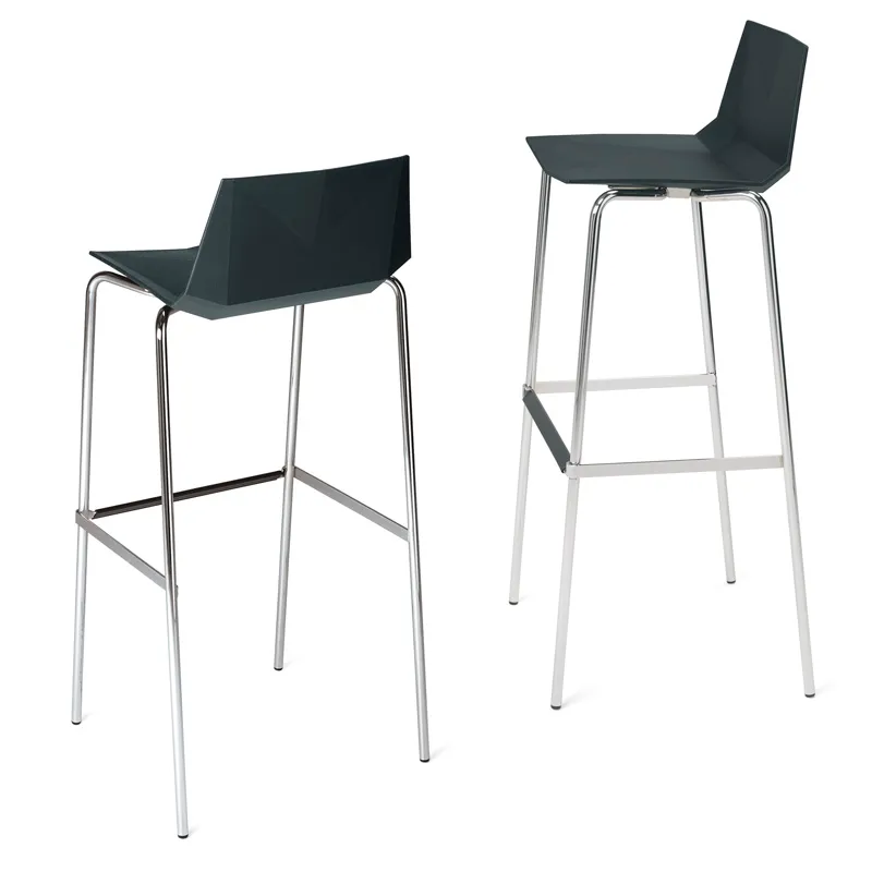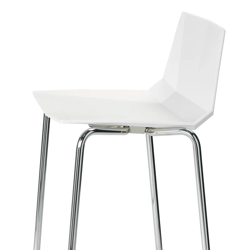 Tremendous appreciation has been expressed for the interesting interplay between areas and lines, light and shadow, of our Mayflower series, which had its premier showing at last year’s Swedish Furniture Fair. With its prismatic structure, the Mayflower bar stool is a logical development of this concept. Distinctive, comfortable and easy to stack. An elegant and practical feature is the 45° foot rest, with its protective, injection-moulded plastic edging.