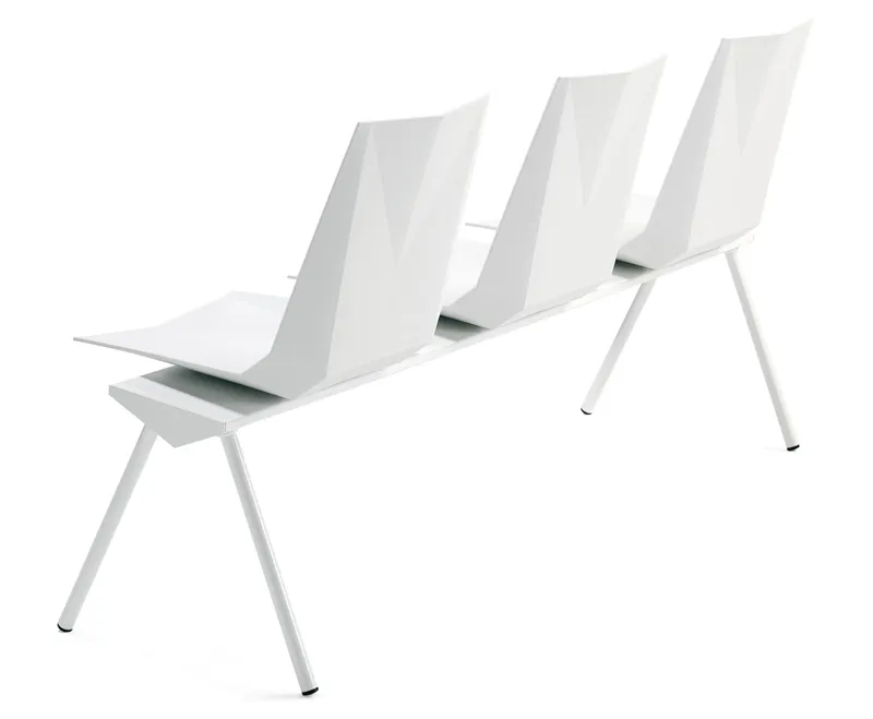 The Mayflower beam sofa has the same expressive, elegant seat shell as the Mayflower chair. The beam’s logical modular construction offers maximum variation in the number of seats. Its load-bearing structure supports the weight of five persons without the need for extra legs. The seat shell is available in white, black or lime, with or without an upholstered seat.