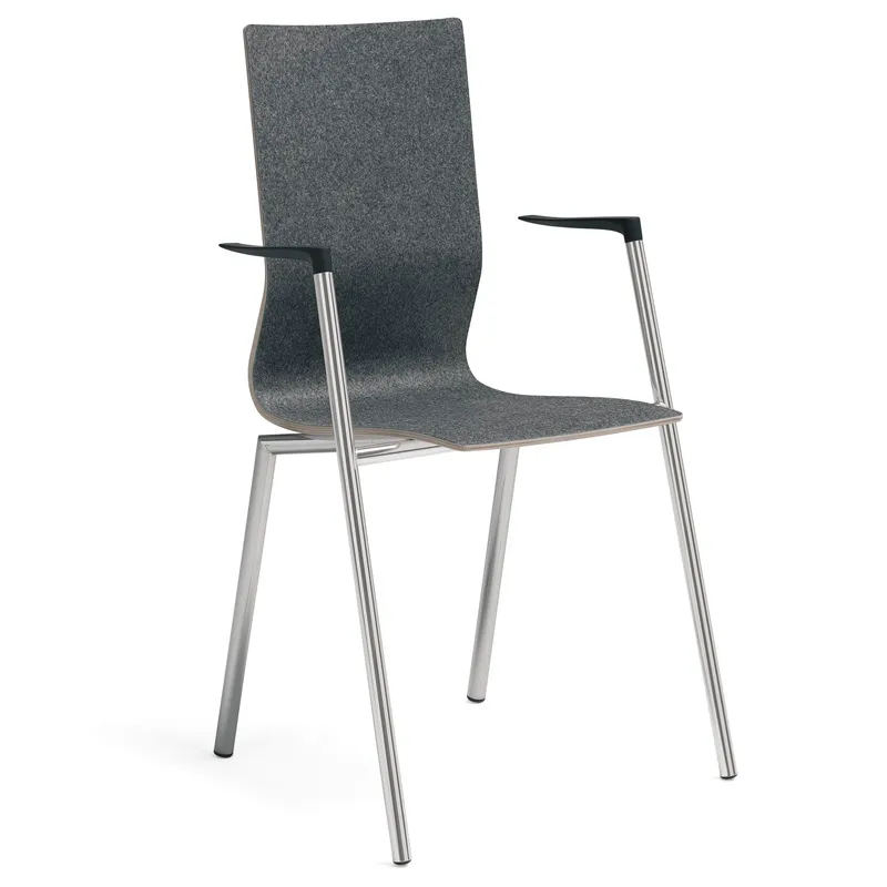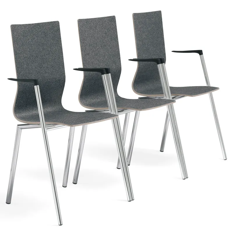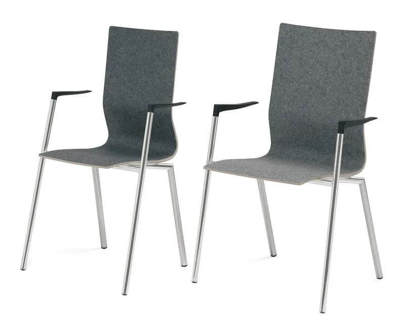 We created a bit of design history almost a decade ago when we launched our Flok chair. The Finnish designers Heikkilä and Wiherheimo broke tradition in a welcoming way when they created this chair with it innovative look, design and features. This year, they’re doing it again! The Mooses chair combines materials and technology in a refreshing and innovative fashion. The seat shell is moulded in an integrated process and is covered with needle-felt made of polyamide/polypropylene. The pressed felt has a tactile surface softness and is also extremely wear-resistant. While Mooses is neither upholstered nor non-upholstered – it is definitely inviting. It is available in two widths – a narrower version for restaurants, cafés and halls, and a more generous version for meetings and conferences.