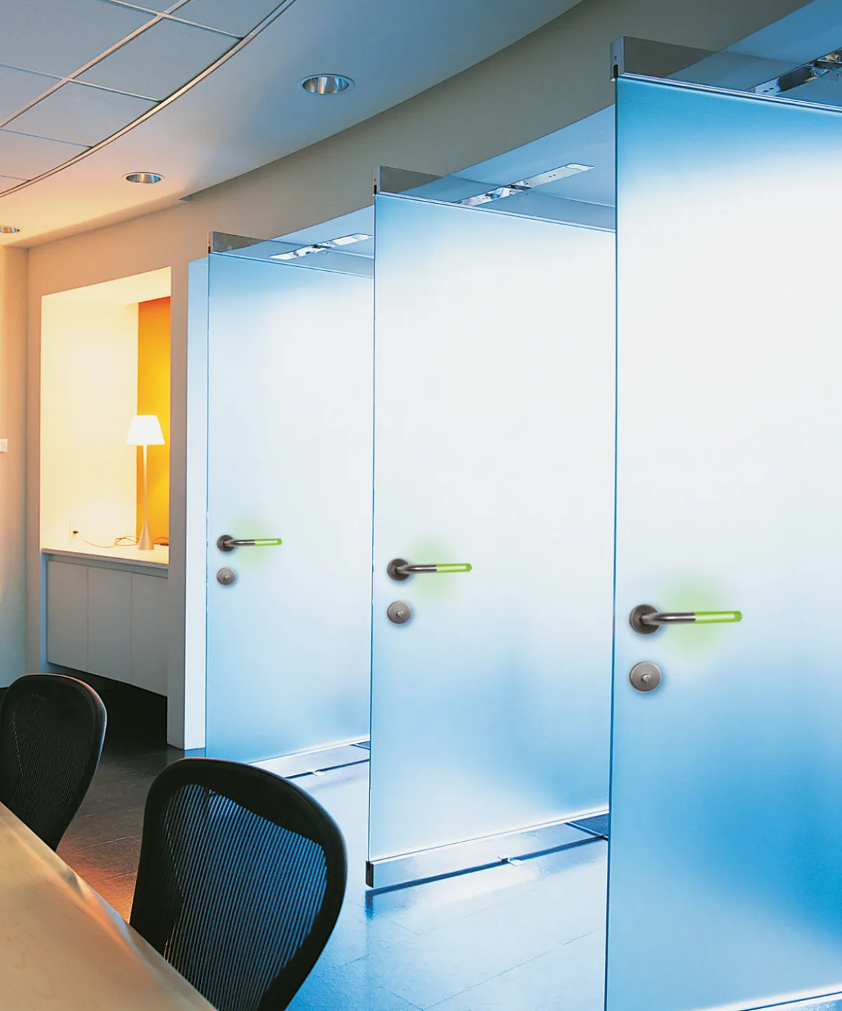 A door-handle that communicates with colored light The areas of application are endless; lavatories, hotels, …