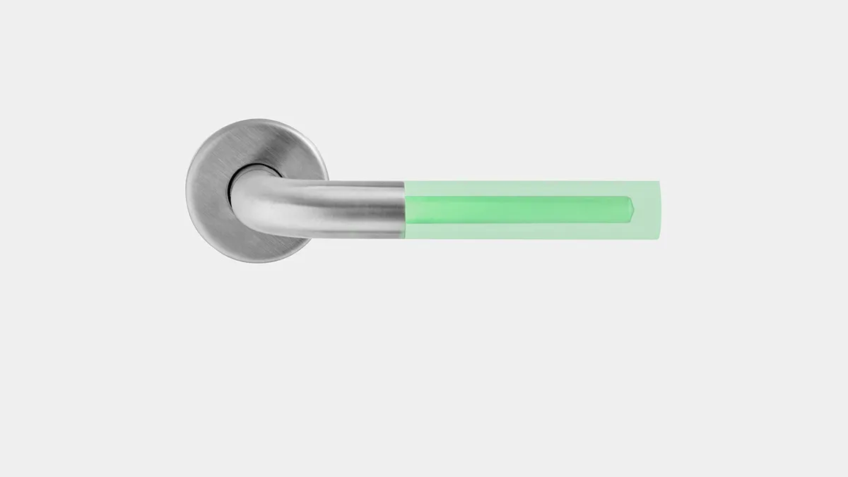 A door-handle that communicates with colored light The areas of application are endless; lavatories, hotels, …