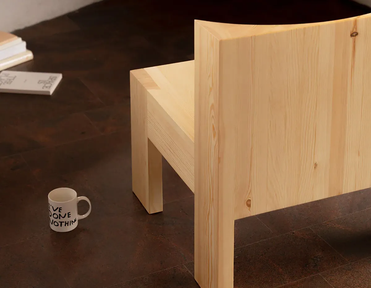 Yet a hard-as-nails first impression soon gives way to a visual softness and physical comfort. Lamb explains that he began by investigating pine; how it is grown, sawn, received, sold.