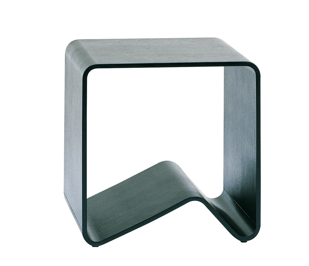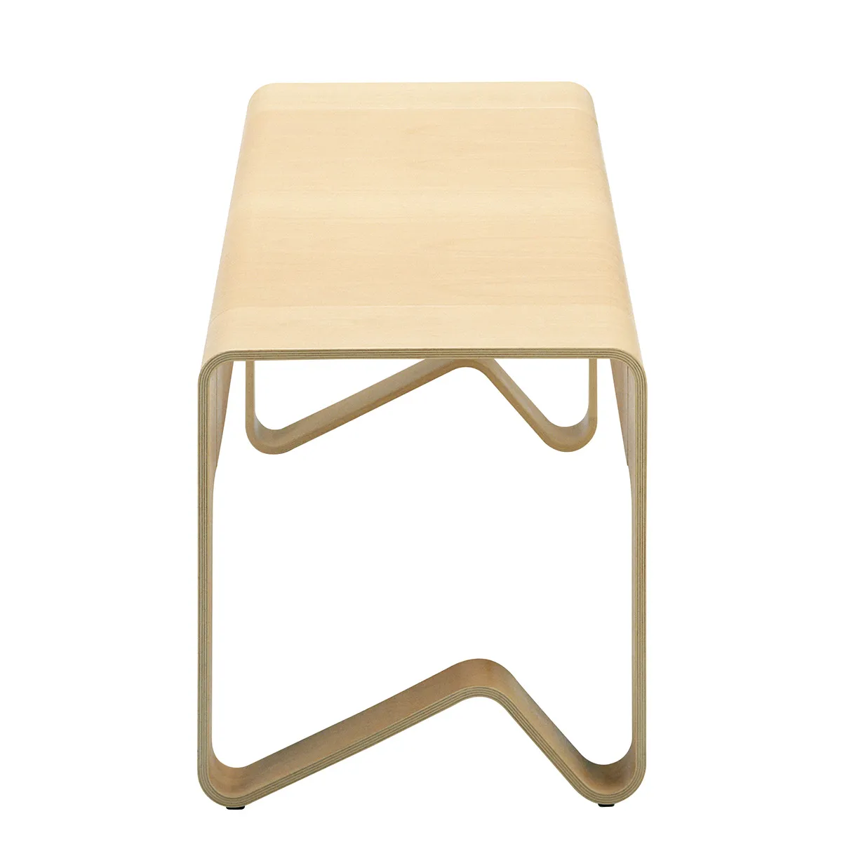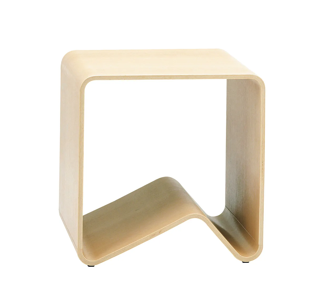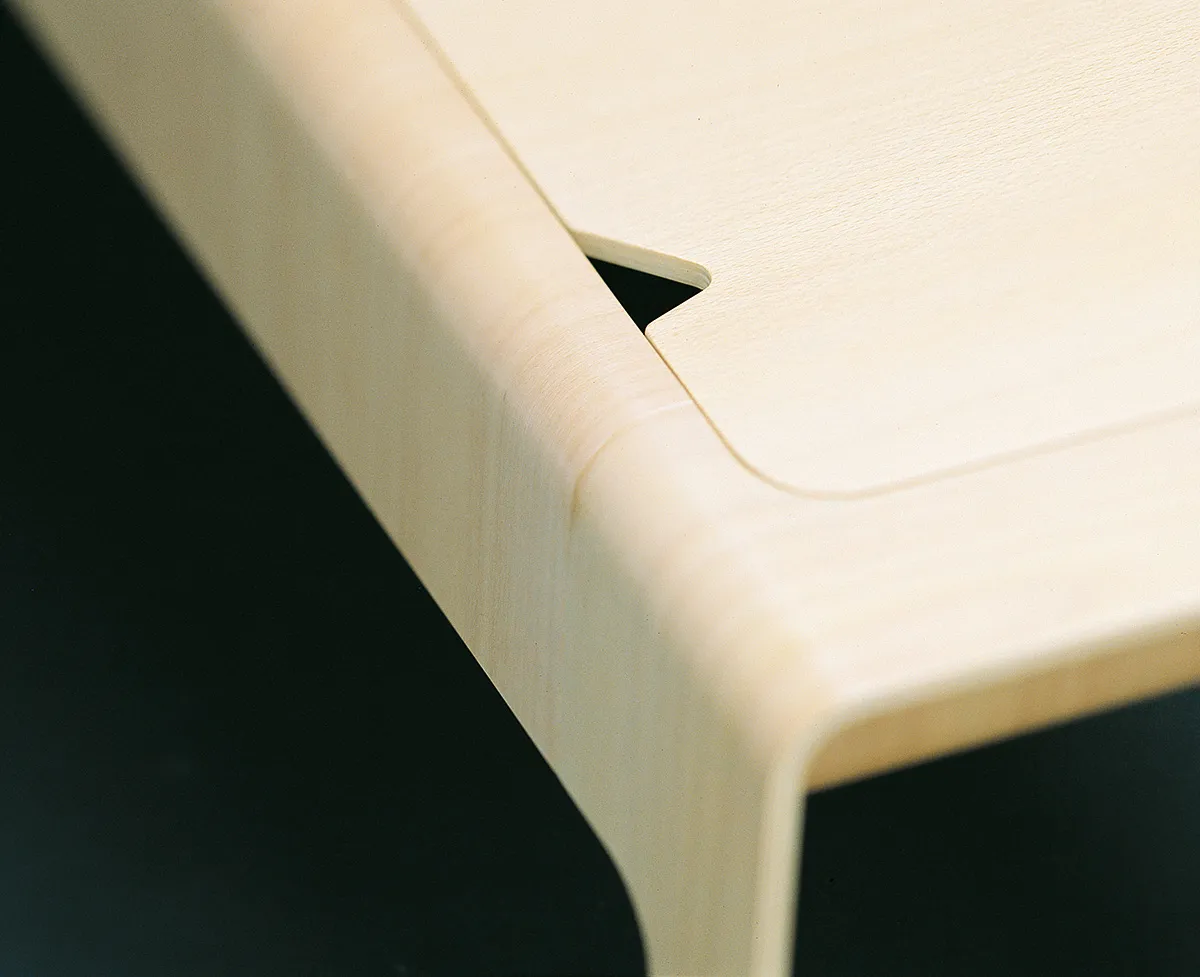 My intention was to create furniture in ‘broad outlines,’ which is possible with form-pressed wood. The idea is that the various components in the series fit together visually but also function as isolated objects. Visually, the Buss series stems from a tube-like form, an extruded square, pressed asymmetrically in the bottom so as to form two support points against the floor. When the form is split, one part becomes a bench with legs and the other part becomes a hat rack. In this way, form and intermediary space become visually interwoven. The curvature is familiar in the different parts.