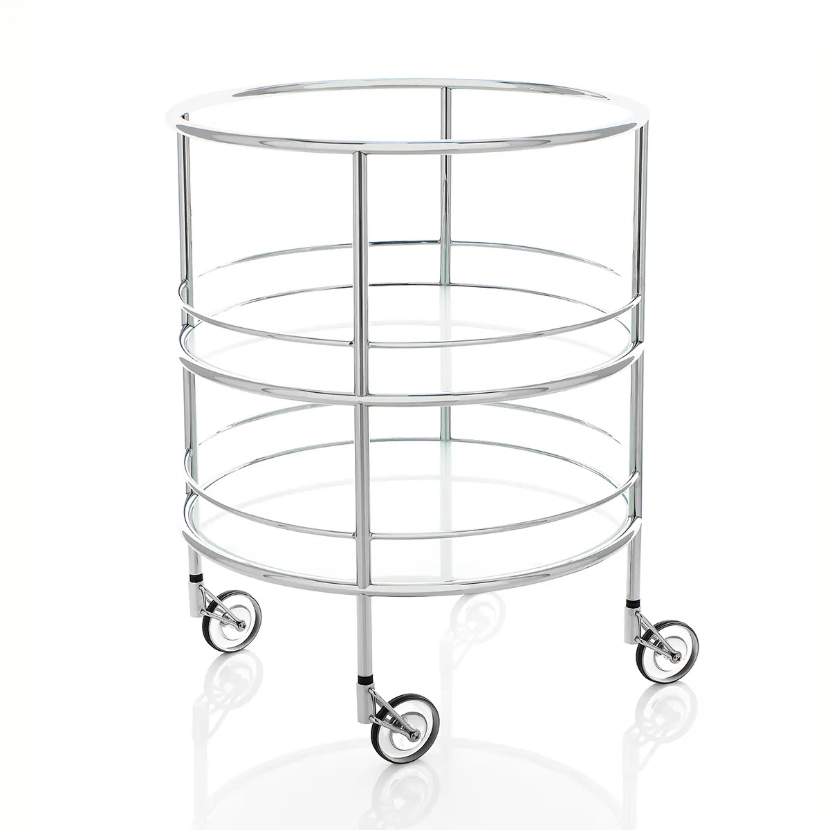 Cargo Support offers square geometry with commercial-grade stability, while Chicago Support provides round elegance with professional functionality. Both feature chrome steel construction, smooth casters, and choice of shelf materials. These restaurant trolleys deliver Swedish design excellence with enhanced practicality.