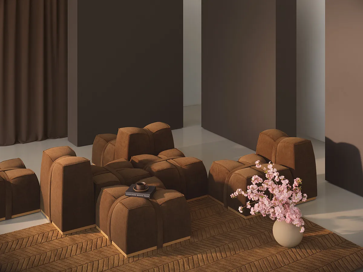Functionally speaking, Cargo goes beyond the idea of a sofa. It’s a landscape of endless seating opportunities. Comprised of three modular components, Cargo opens up a world of configurations and adapts effortlessly to all kinds of spaces. The modules strike a playful tone in their expression yet remain precise in form – rooted in the geometry of a classic cube, twisted and transformed into something unexpected and dynamic.