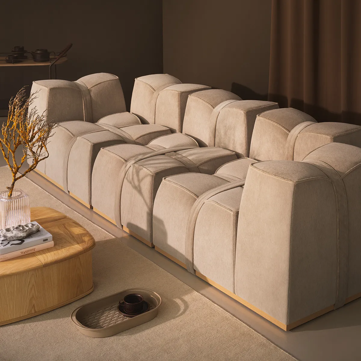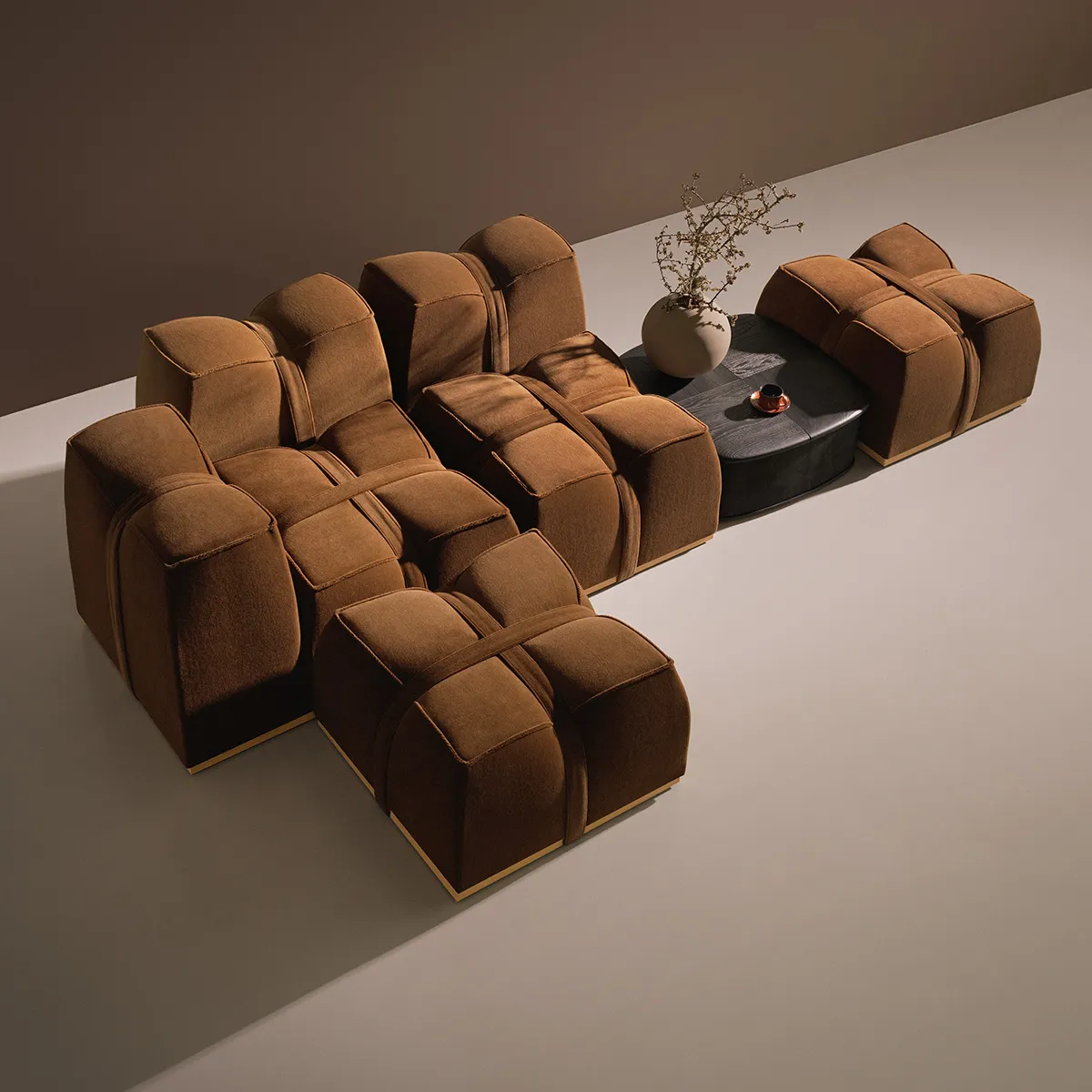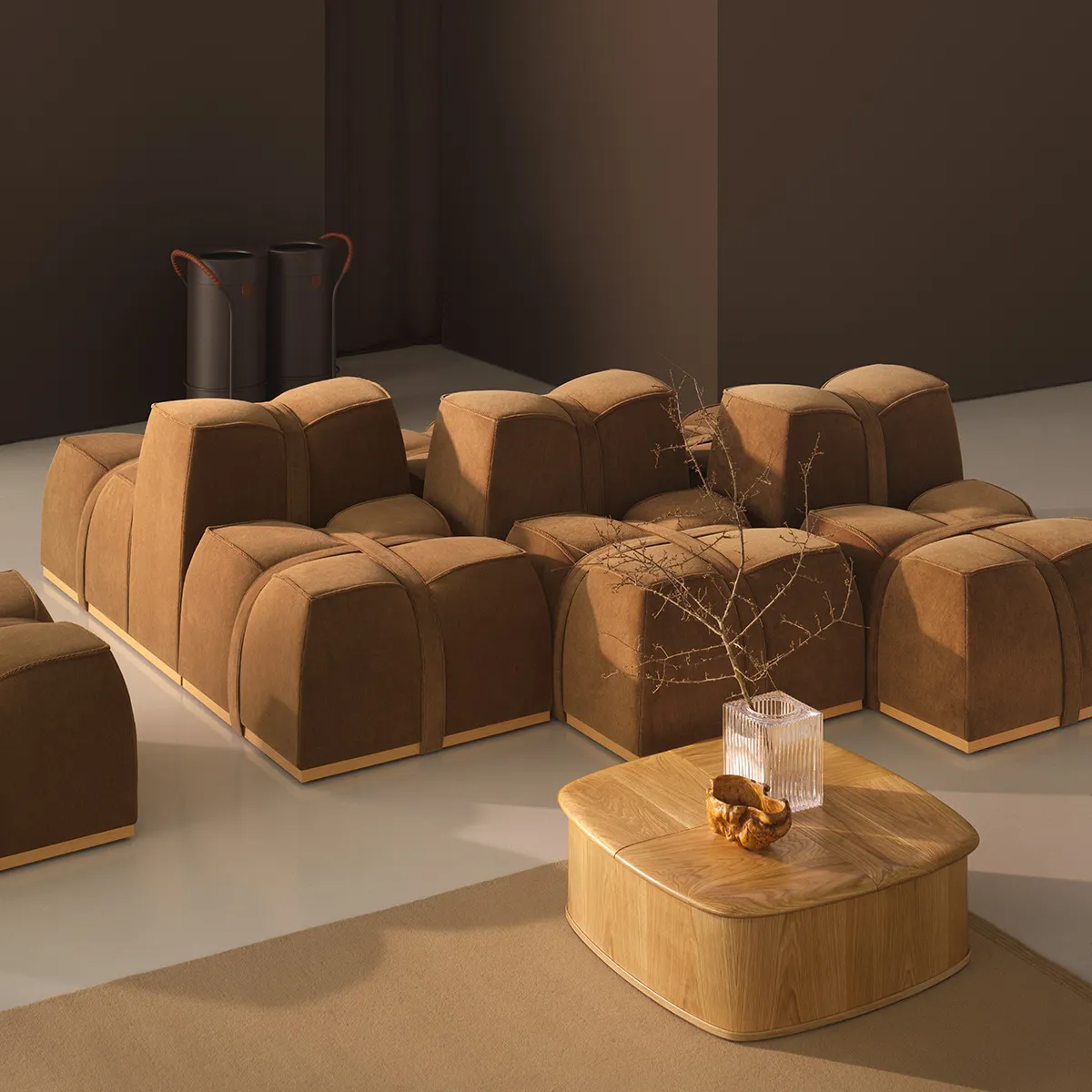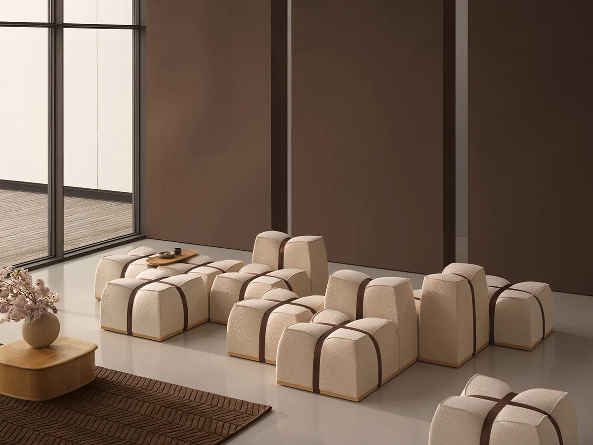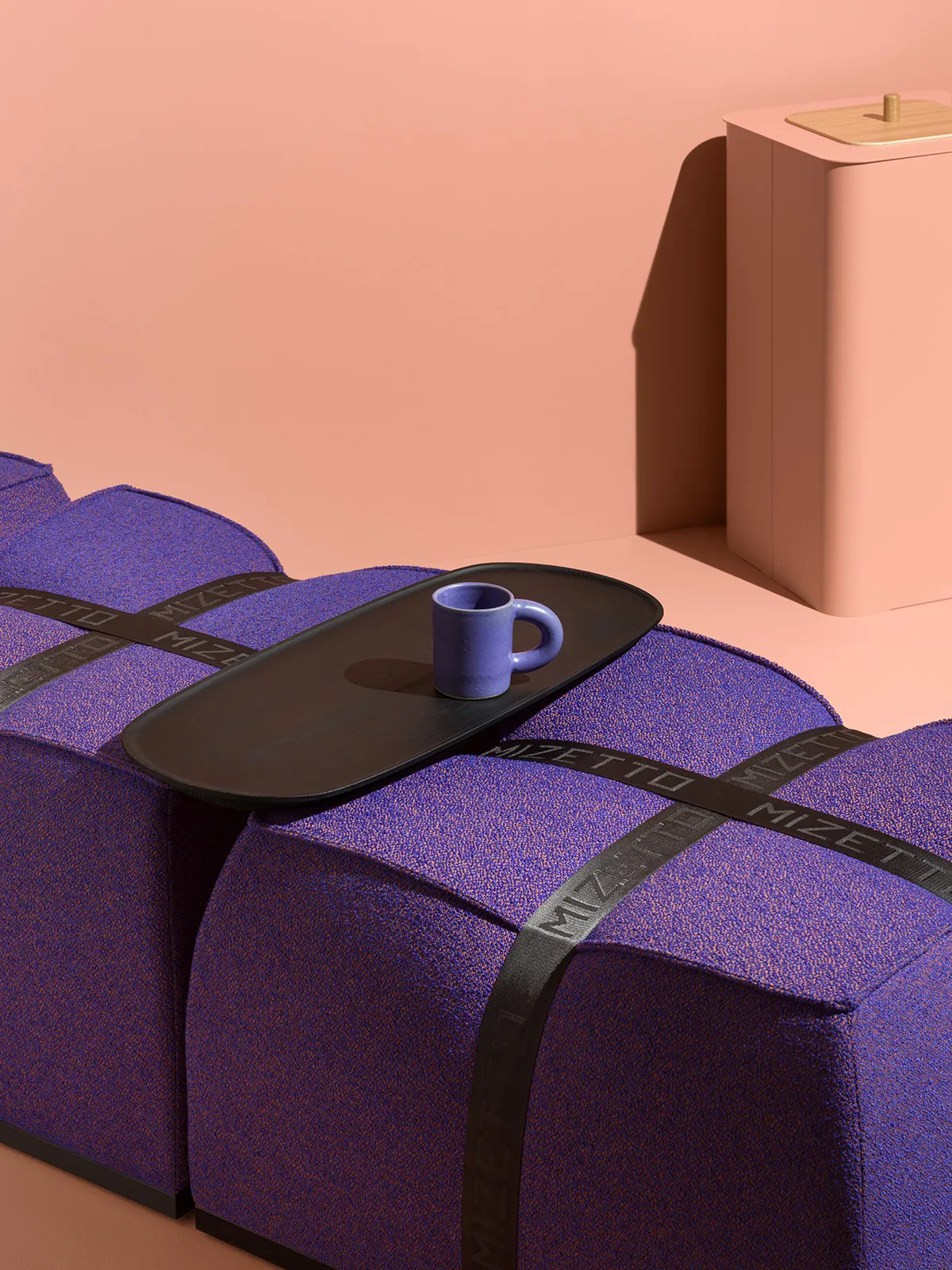 The inspiration for both the name and the shape of Cargo comes from space-saving cargo packages used in logistics, secured with tension straps. Similarly, the modular sofa is designed for easy and efficient shipping.