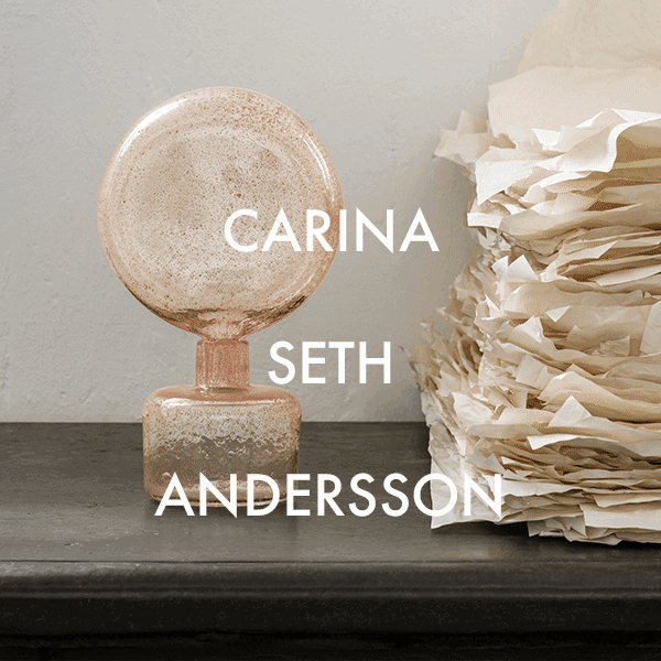 Carina Seth Andersson is a well-known designer from Stockholm. She has studied at Orrefors National School of Glass and holds an MFA from Konstfack, University College of Arts, Crafts and Design. Since 1993, she has worked as an independent designer and is known for her distinct glass and ceramics works. Her works are held in permanent collections at prestigious institutions such as the Victoria and Albert Museum in London and the National Museum in Stockholm. Carina has also been a prominent teacher at Beckmans College of Design and is a board member at Capellagården on Öland.”