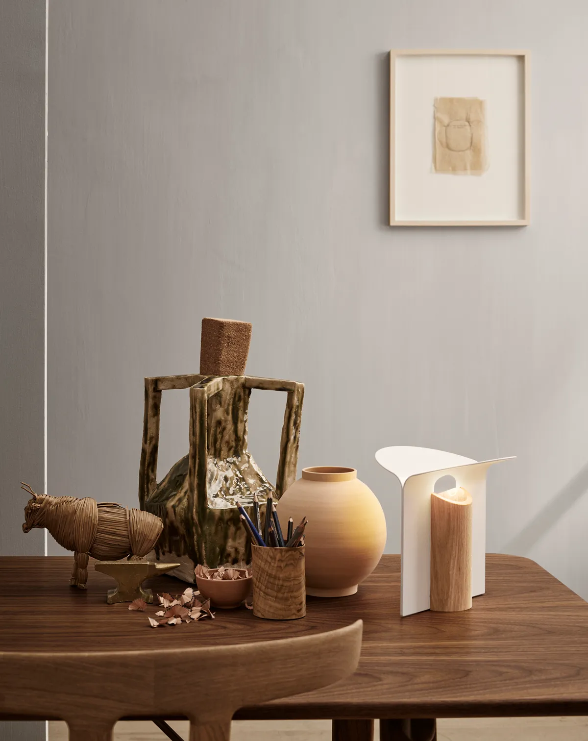 Rikke Frost has allowed the materials play a leading role in the simple, organic design of the Petal Lamp, where her overarching goal was to strike a balance. This is why she made the lamp’s base in wood with visible grains that exude natural, warm radiance, while the light reflectors are made of metal with a cooler but still soft expression. As a result, the materials finely complement one another, while the lamp radiates expressive, glarefree light.