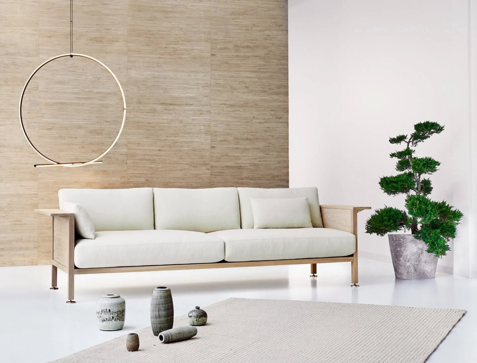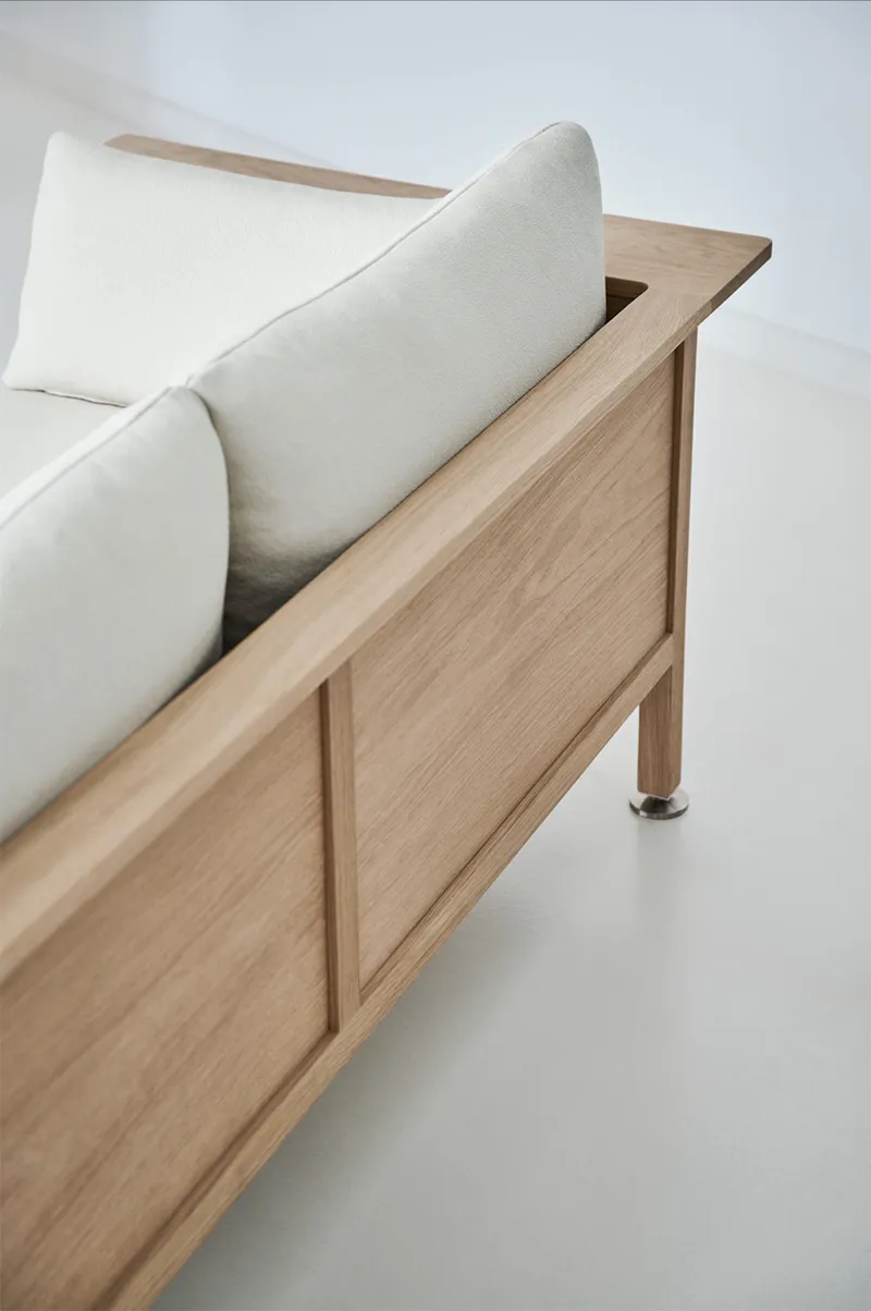The Casework collection, a collection revolving around sustainable thinking, created in collaboration with Norwegian architecture and design brand Snøhetta. After unveiling the first piece in the collection at the Furniture and Light Fair in Stockholm, the complete collection, consisting of two sofas and a chair, is launched during 3daysofdesign. Each piece in the collection was designed by Snøhetta and Erik Jørgensen with a steady eye for minimalism, sustainability and adaptability. All of the materials are natural – the body and legs of the sofa and chairs are made from raw oak, and the cushions are made from natural fibres and upholstered with textiles made of cotton, viscose, linen or wool.