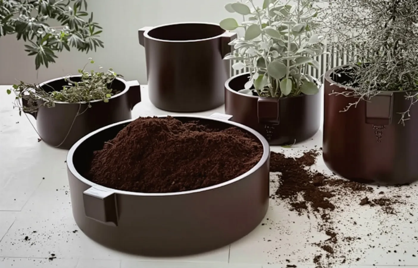 A series of robust stoneware vessels, designed to be used for plants, fruit or other …
