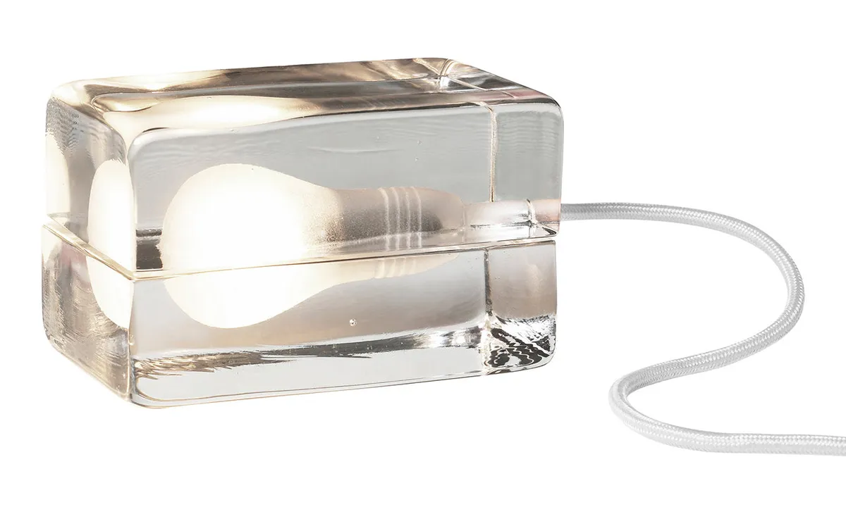 The idea was born when Koskinen, as a design student in Helsinki, wanted to create a gift where the packaging became part of the object. The Block Lamp didn’t fit the workshop requirements, but Harri made 40 of them anyway by himself. They sold out the same evening he presented them. His experiment with encasing a bulb in two glass blocks led to immediate success.