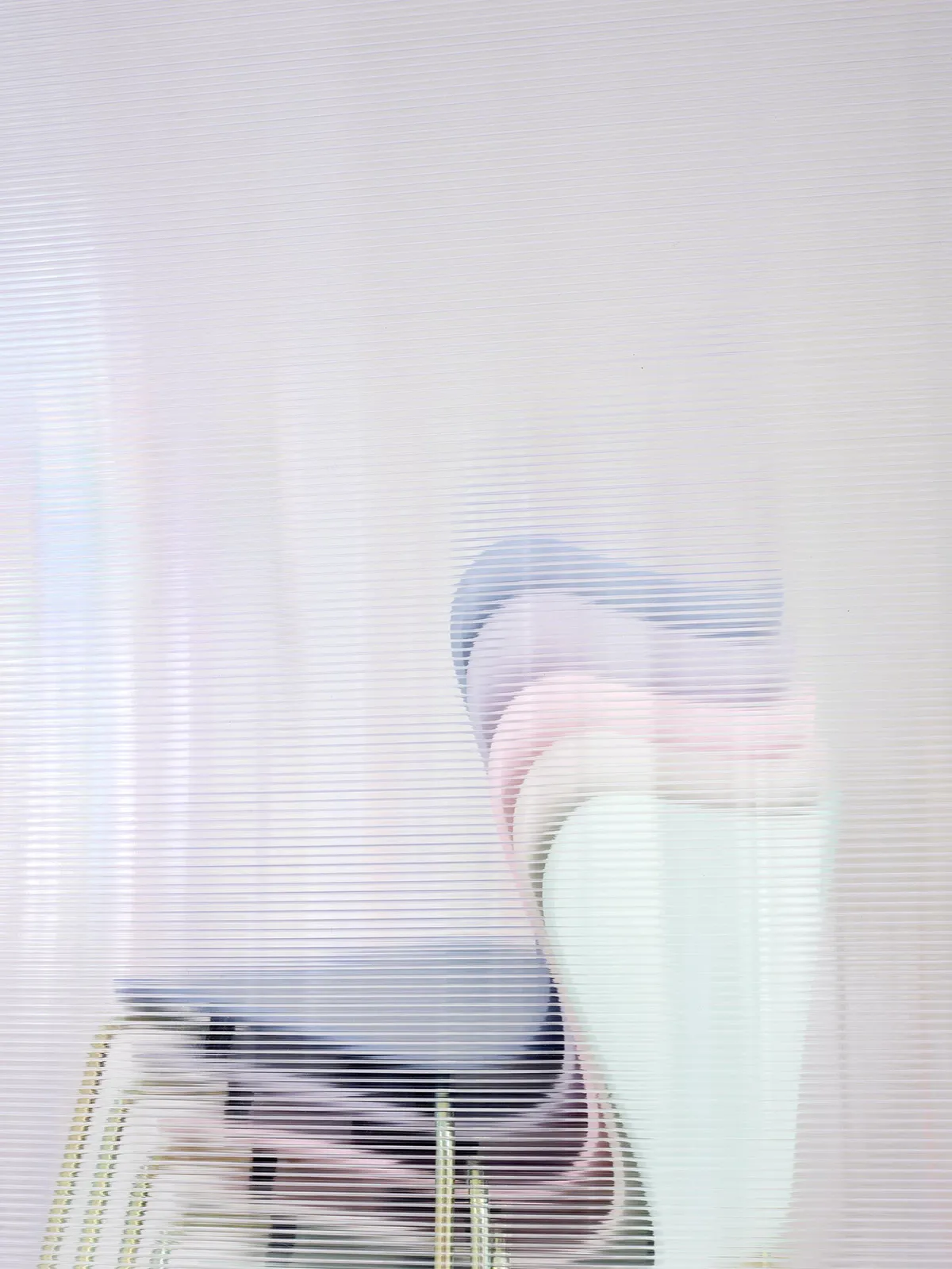 The 7:14 AM palette is a limited-edition series available from March through 2025. Colours are 7:14 AM Blue, 7:14 AM Violet, 7:14 AM Pink, 7:14 AM Beige, 7:14 AM Green. It is available with a new iridescent base, a zinc chrome which reflects the light and the colours of the shells, created especially for the limited-edition palette. The chair can also be purchased with a classic chrome base.
