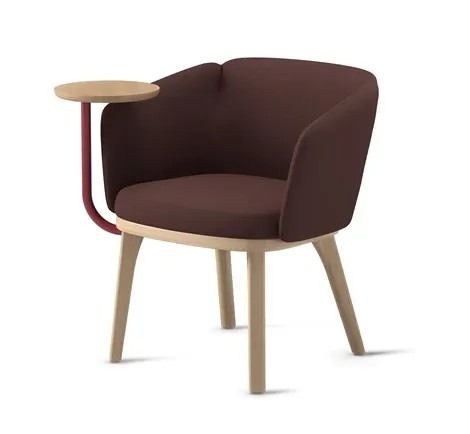 Central is conceived as a family of chairs. It can be equipped with metal legs, wooden legs, or a castor frame. An optional round, swivelling table makes it particularly suitable for creative work, meeting areas and educational settings.
