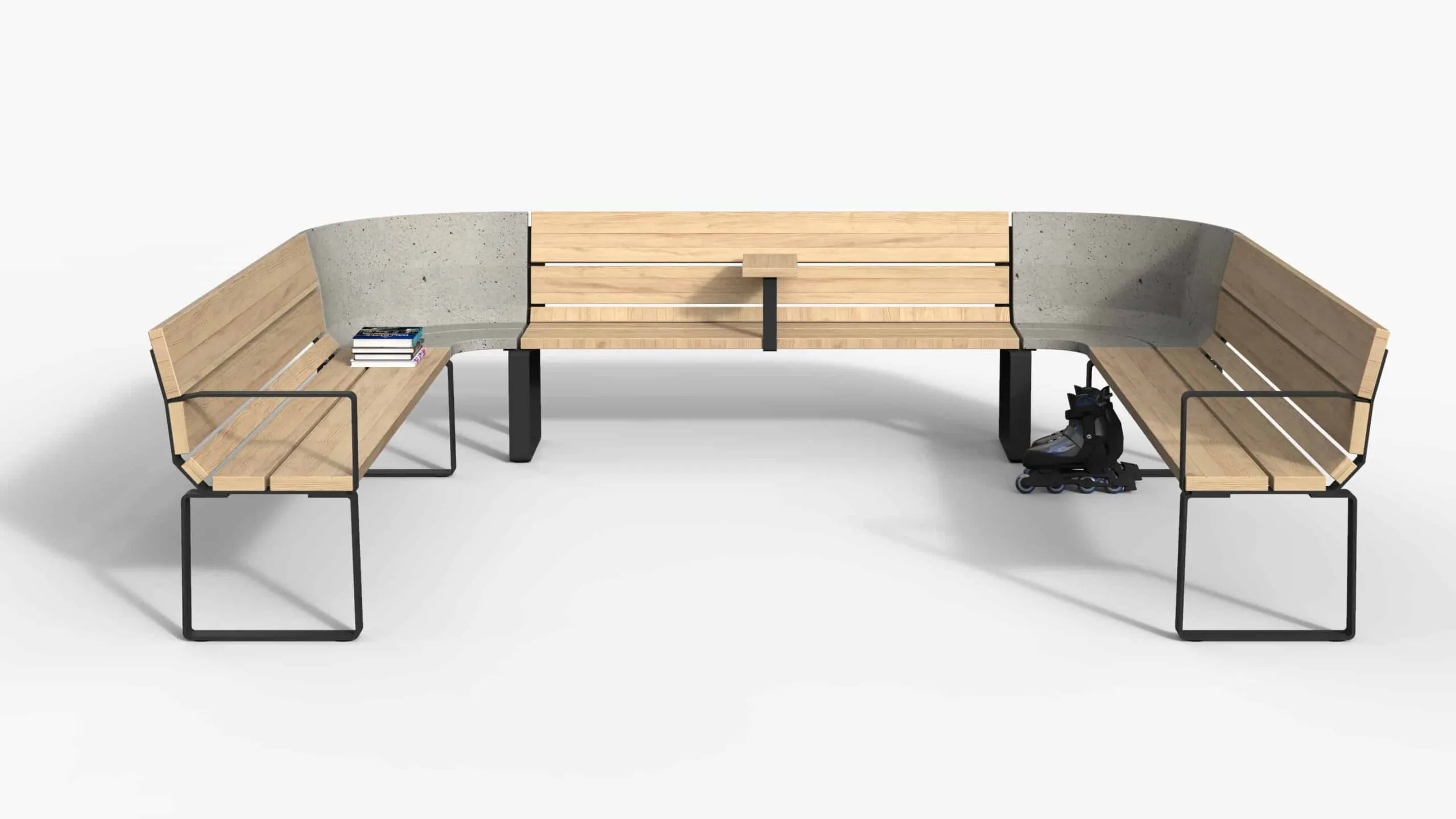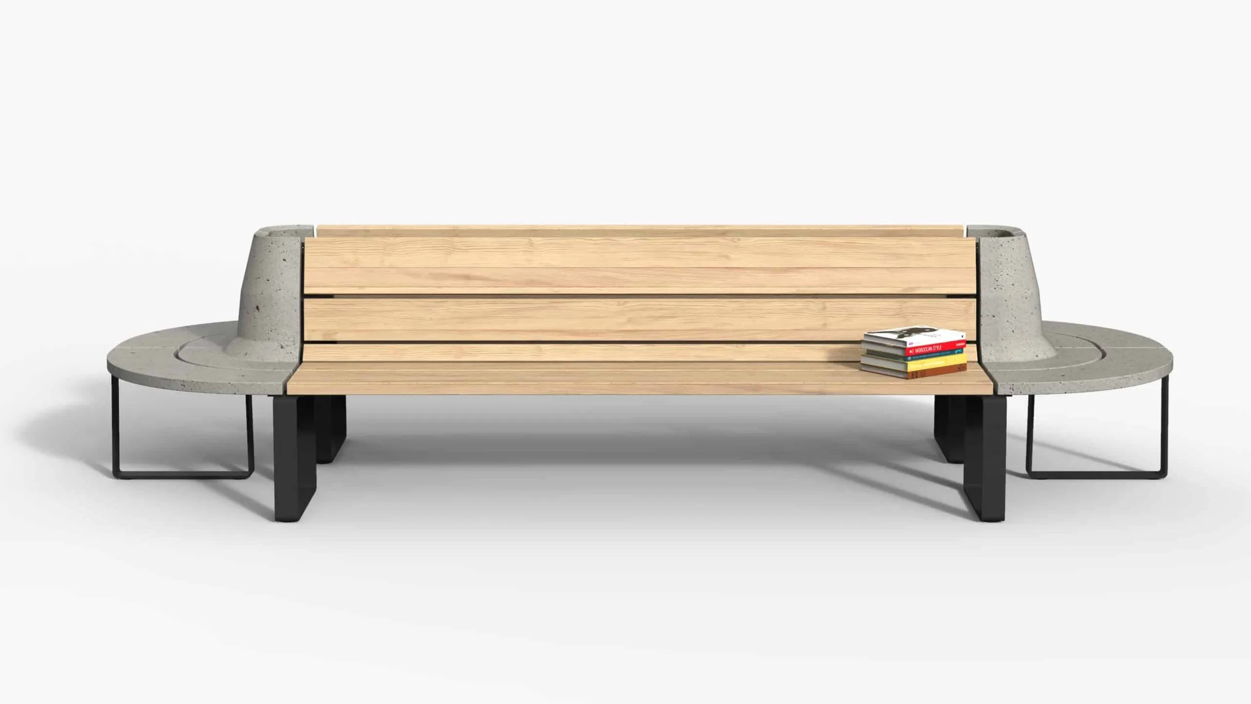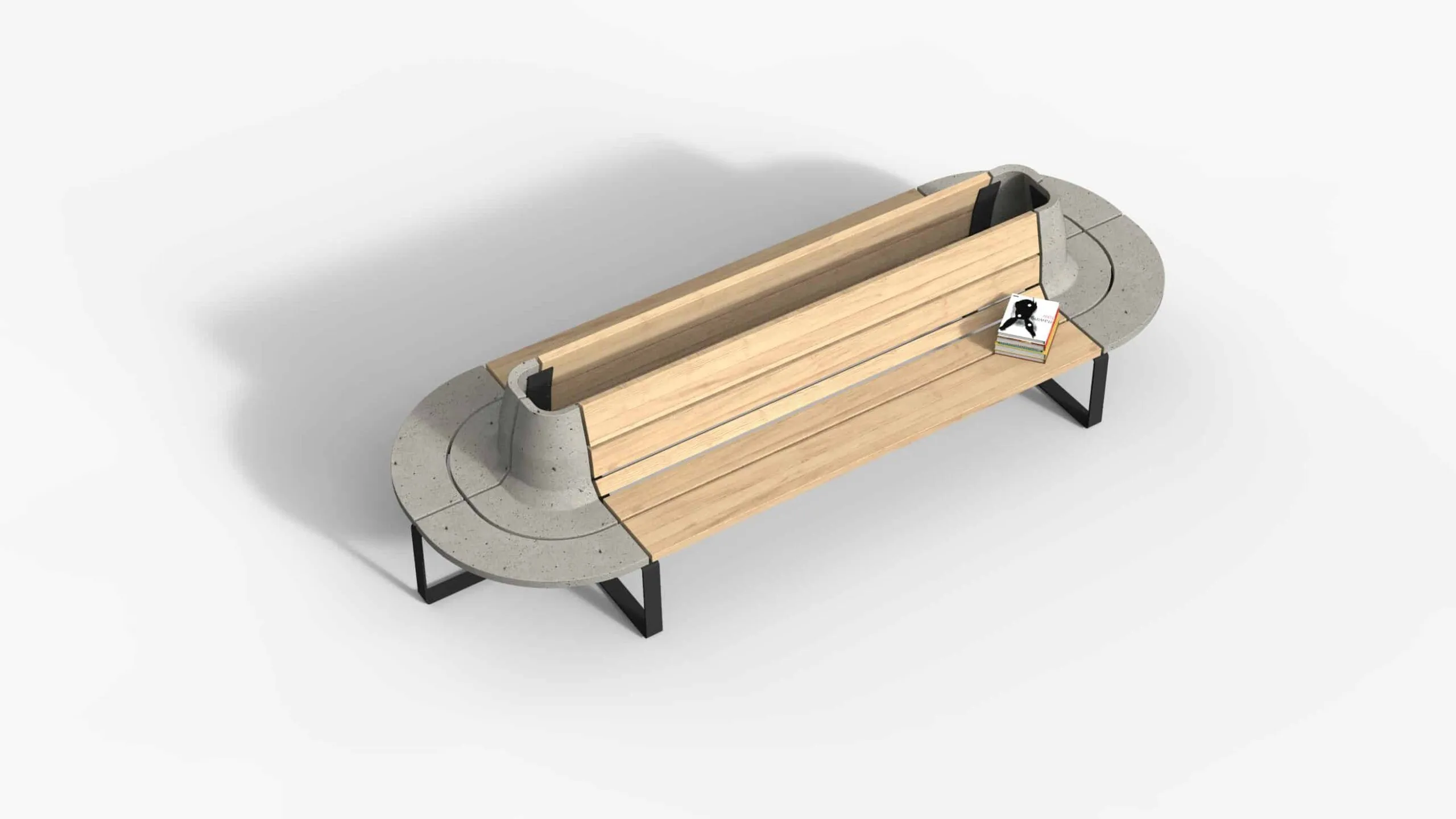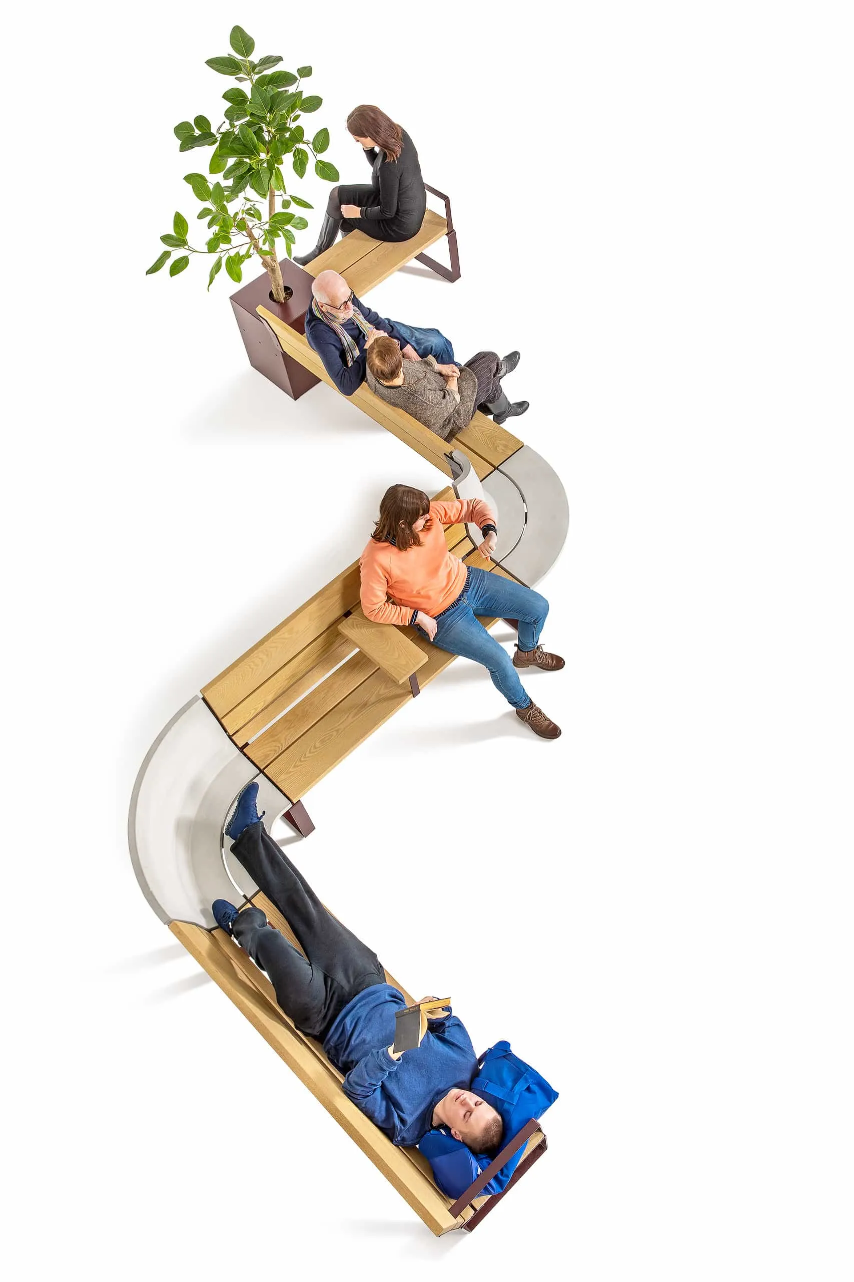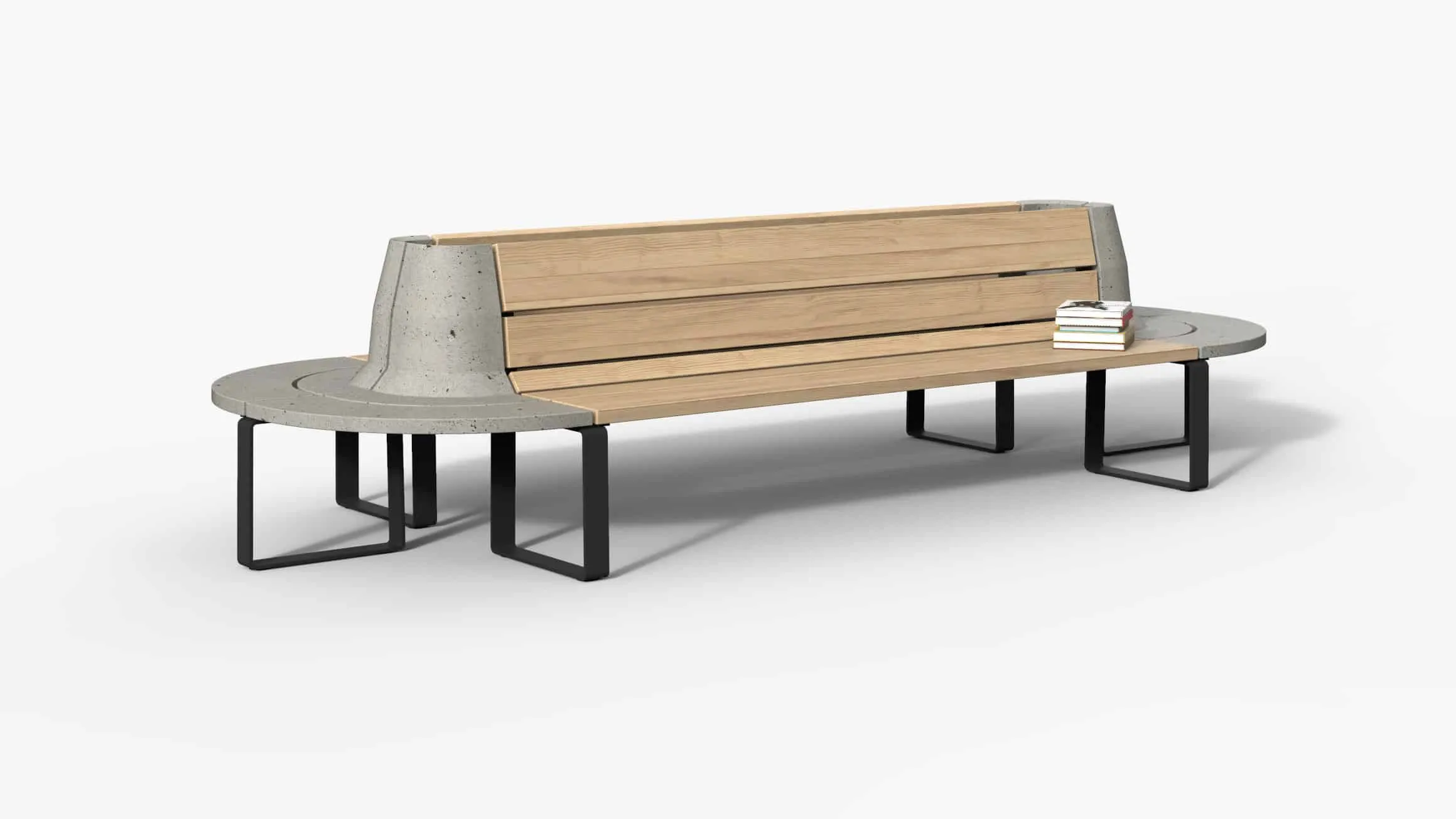 The system is comprised of freestanding components crafted from polished concrete supports and sleek lengths of sioo-treated oak. Central was conceived as a streamlined modular system that creates a wide range of forms and configurations. Curving components and linear modules interlock to create seating with backrests, tabletops and armrests, while optional planters slot into the system to add variety or designate individual areas. Its seat height, backrests and armrests have ergonomic proportions that accommodate a wide range of body types and levels of mobility. Central creates a one-of-a-kind seating to make any environment unique.