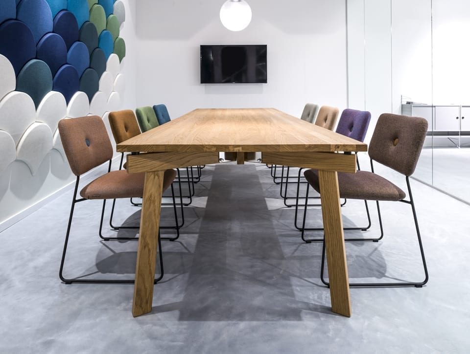 Size is, as the name implies, a series of tables that can be adapted to every conceivable size. Size tables are made of solid wood in oak, ash or walnut. The underframes with 1, 3 or 4 legs allows table tops in various shapes; round, rectangular, square or even triangular to fit your interior and need. Size tables can be large or small, high or low. And, whatever the form, the underframe has been designed to adapt easily to every imaginable shape and size.