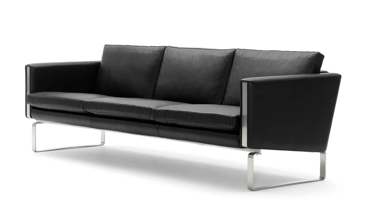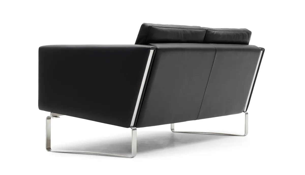 CH100 Sofa Series is a distinctive two, three or four-seater sofa that offers a combination of stainless steel, wood, foam and leather in a design with excellent comfort. There is a stainless steel frame in an unconventional design with an upholstered top made by traditional methods. The sofa’s inner wooden frame is padded after the best quality standards and the loose cushions are made with a foam core surrounded by down which makes them stable but, at the same time, soft. The stainless steel frame with a brushed surface with distinctive bends demonstrates the designer’s understanding of how to also work with this material. In addition to the sofa, the series also consists of a lounge chair, as well as two coffee tables.