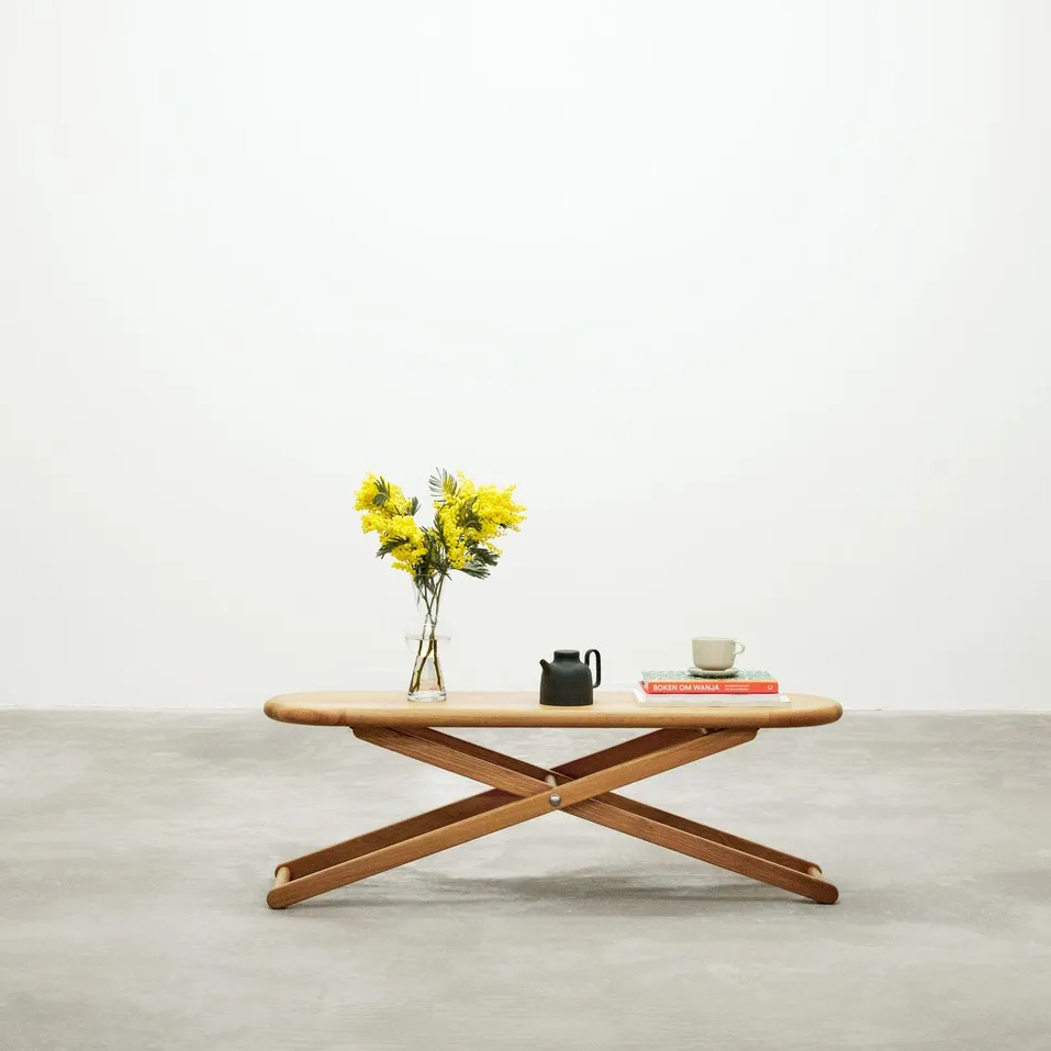 Use it as nimble desk for the home office, or to show off precious acquisitions, or as a temporary bar. Raise it a notch to browse and write away on your laptop, or with an assortment of flowers. Or lower it to use as a stylish table by the sofa. Cinderella aspires to be so much more than an ironing board. With tough legs in smooth massive American oak, and an oak veneered tabletop, Cinderella stands firmly and will adapt to various uses, and of course to be at hand when ironing is about.