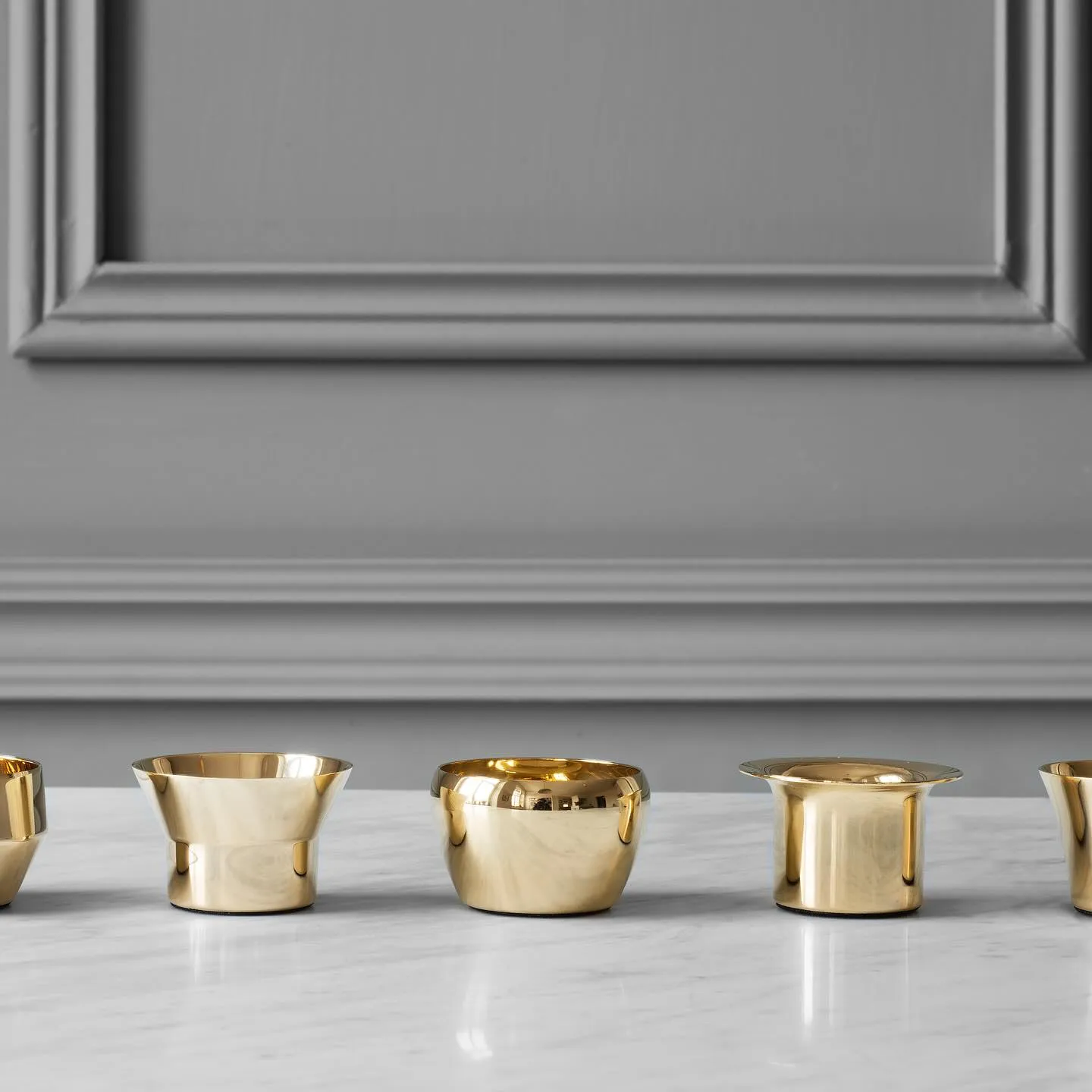 Kin, tea light holder, brass, silverplated brass, copper, 2011