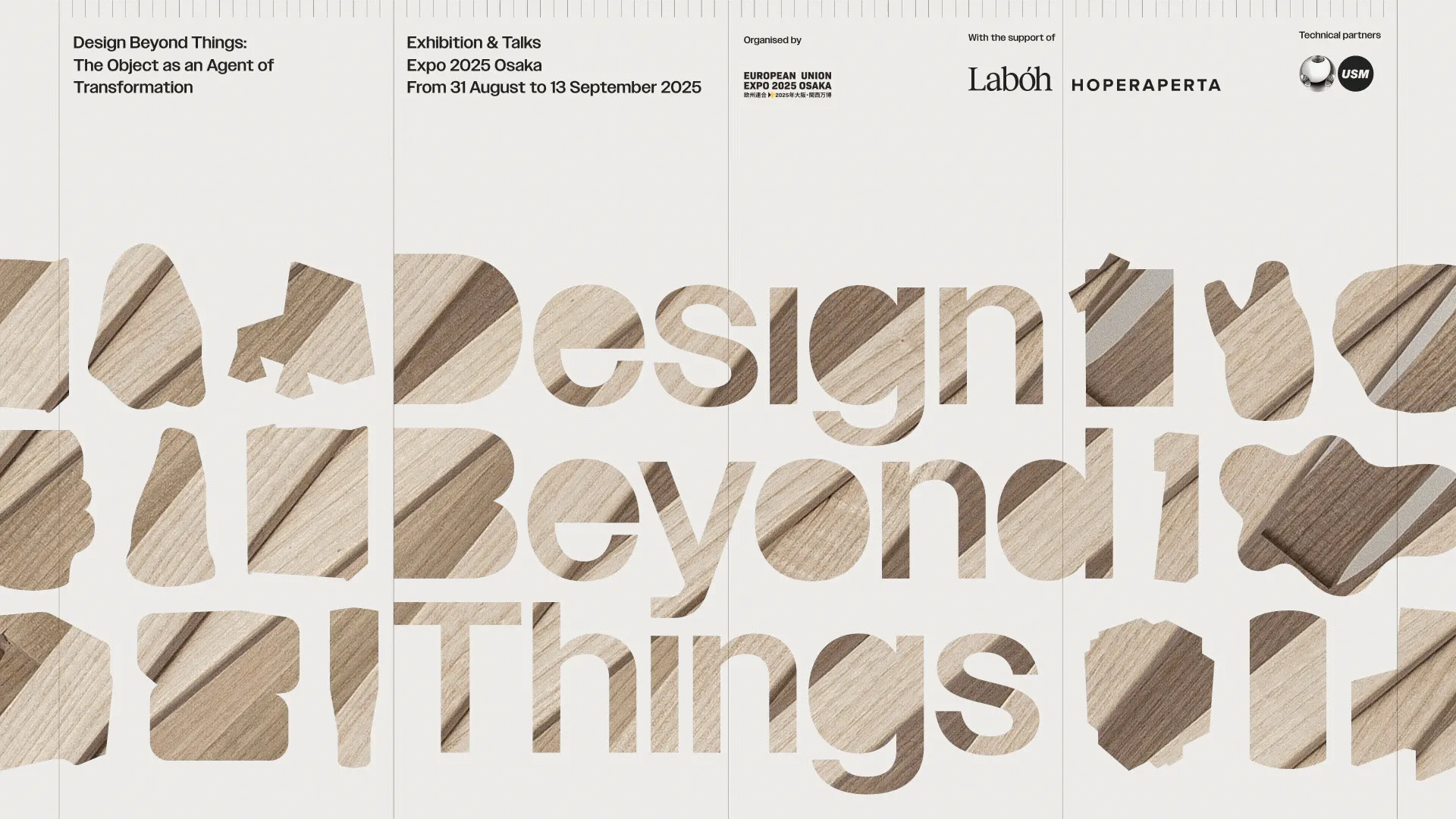 Design Beyond Things. The Object as an Agent of Transformation is the official exhibition organised by the European Union at Expo 2025 Osaka running from 31 August to 13 September 2025. Curated by Patrizia Catalano, architect, professional journalist and founder of HoperAperta, and Miriam Giordano, communication expert, founder and director of Labóh, the collective exhibition is presented in the EU Pavilion, bringing together over 30 design projects by leading designers from 16 EU Member States.