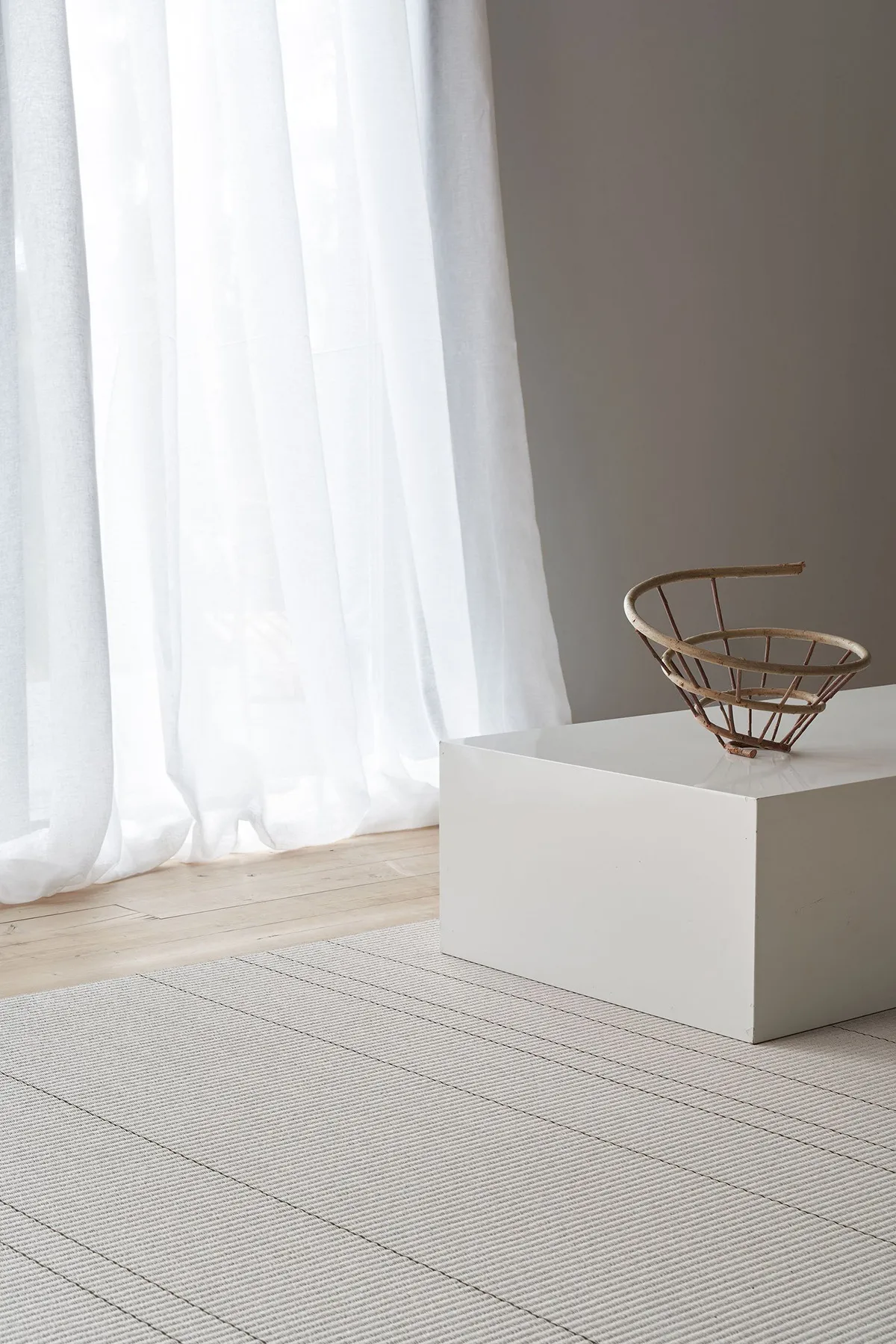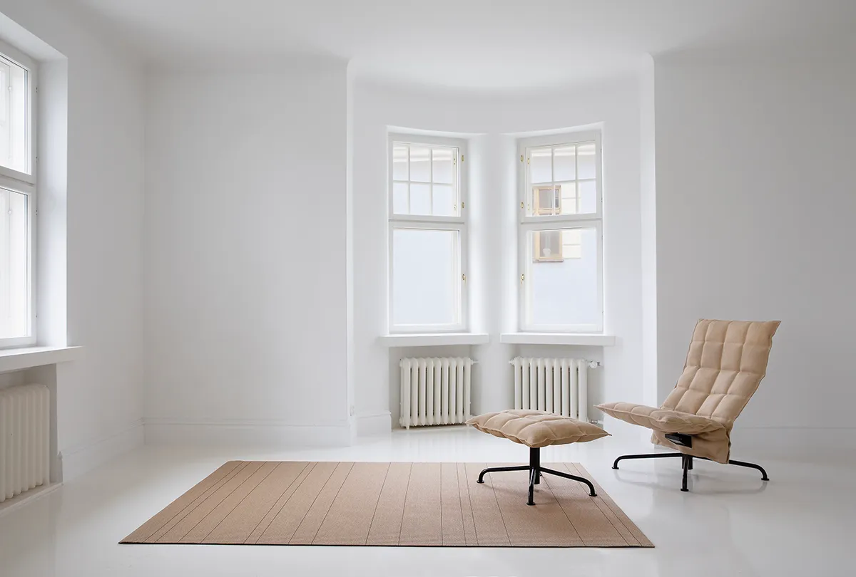 Willow paper yarn carpet was designed by the Swedish design studio Claesson Koivisto Rune, the carpet saw the light of day originally at Helsinki Design Week 2002. Year 2022 the carpet has gone through product development process in which its final touch was found from natural dye. The irregular striping is dyed using willow bark. Made of paper yarn, the carpet combines gentle tones of willow colour and the neutral base color. The collection includes also black-natural colour combination that is characteristic of Woodnotes. In the Willow carpet, a 240 cm pattern report that starts from the beginning when the carpet exceeds 240 cm in length. What is special and important to us is that the willow natural dye is produced locally: The willow is grown and collected, made into a dye and it has given its colour to the paper yarn in Finland. Using willow as natural dye is an old and well-known technique, but the ecological dyeing is continuously developing to meet the needs and standards of the modern world, so that hopefully one day natural dyes could replace synthetic ones. For Woodnotes the use of willow dye is especially inherent, since the material of the carpet itself is spun from wood. The rugs are woven from plant fibers and do not contain any animal-derived finishing materials, so the rugs are 100% vegan.