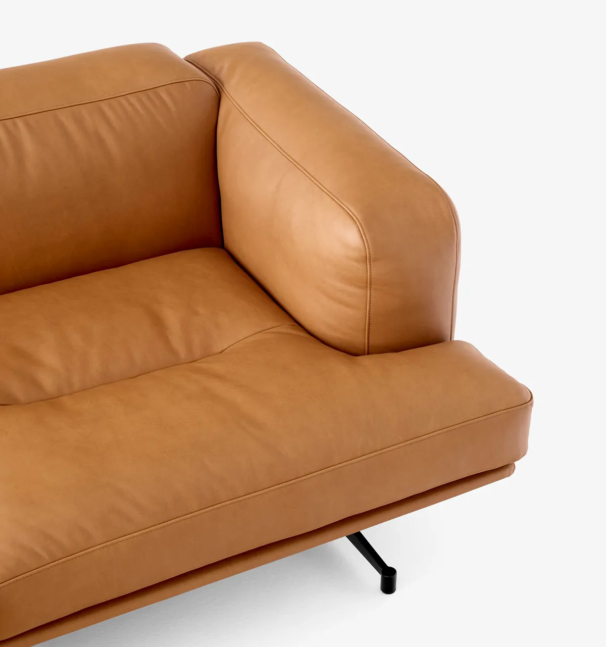 The Inland sofa is available as a two-seater or a three-seater. Its upholstery is available in a range of materials to suit any interior, whether that’s a classic leather, a contemporary linen, or a warm and welcoming wool.
