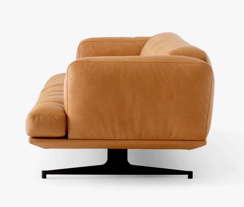 Torbjørn Anderssen and Espen Voll wanted to design a sofa that would provide the utmost comfort within a clearly defined architectural framework. With this vision in mind, they designed Inland, a low-form, deep sofa with high arms and a warm black steel-footed base that gives it the sense of floating.