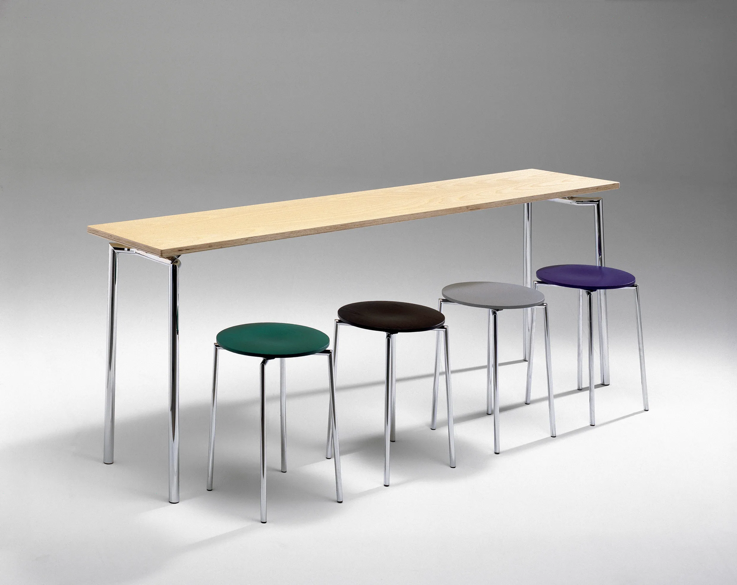 The 2003 introduction of the Cobra Counter Stool and Table marks the collection’s evolution into comprehensive dining and hospitality solutions. These pieces complete Mattias Ljunggren’s vision for a unified furniture family spanning all seating heights.