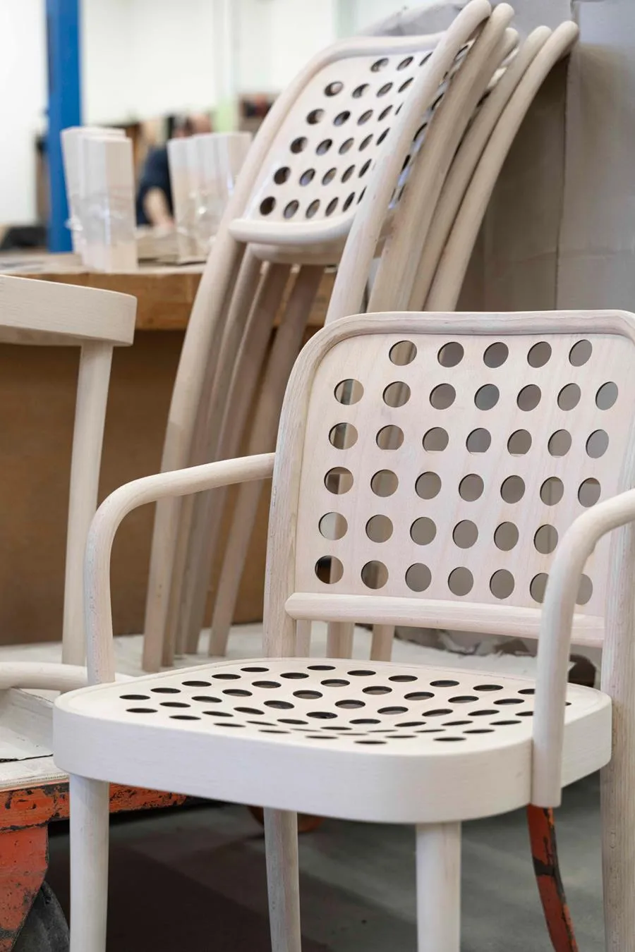 Eero Koivisto adds: “From the beginning, we did not know how many holes there should be, or how large. We spent many hours creating those openings. We also had to deal with the dimensions of the holes. The original Hoffmann chair has larger holes because it was not possible to make them smaller at that time. But now we have procedures that can. I like that we extended traditional bentwood technology, which has not changed for 160 years, to the future, using these contemporary possibilities.”