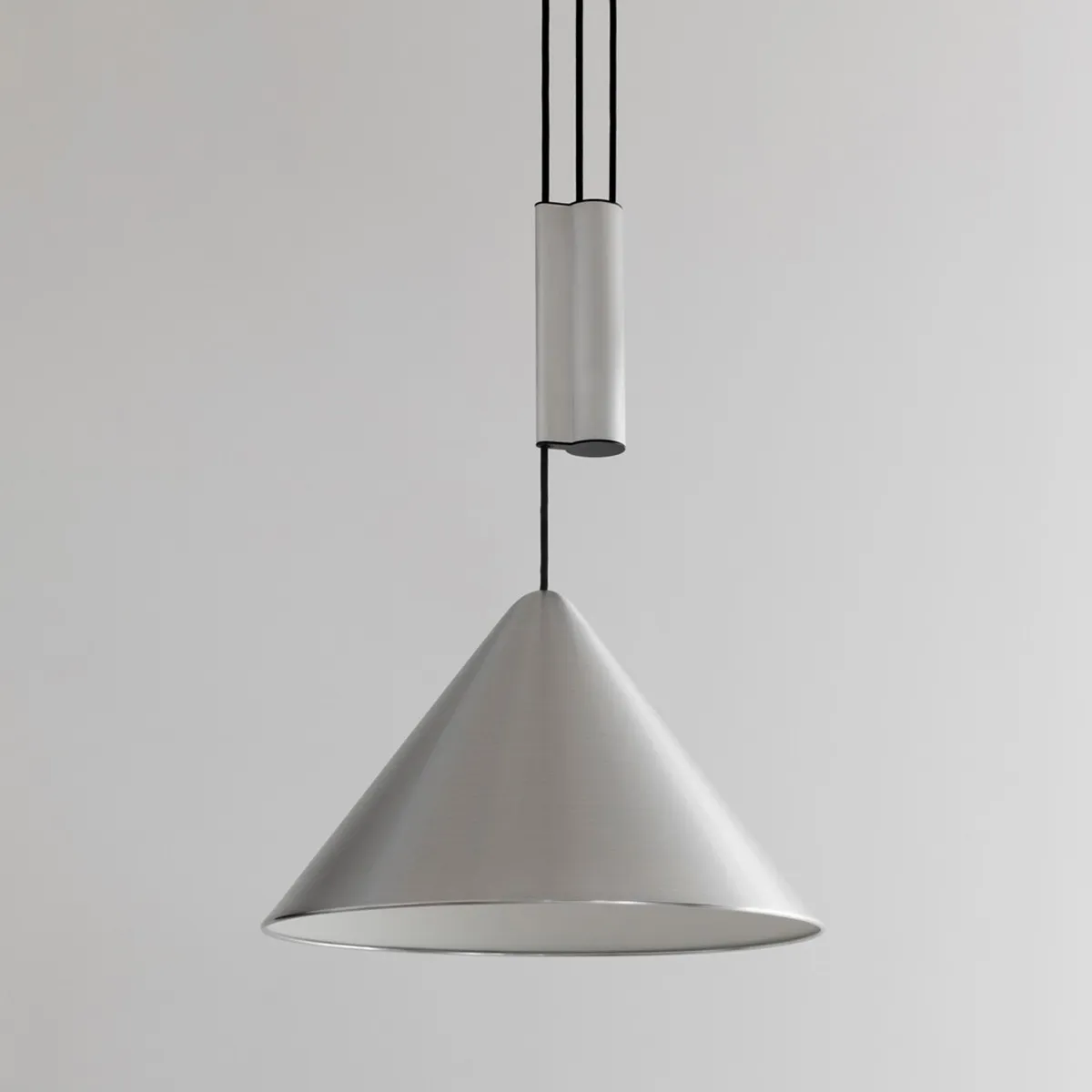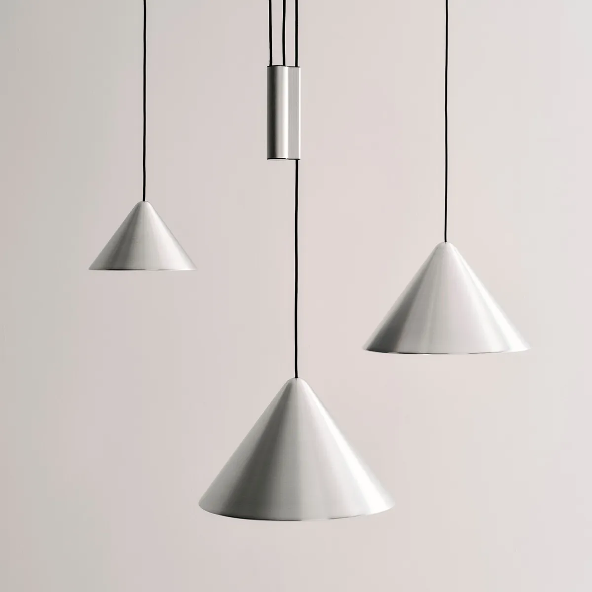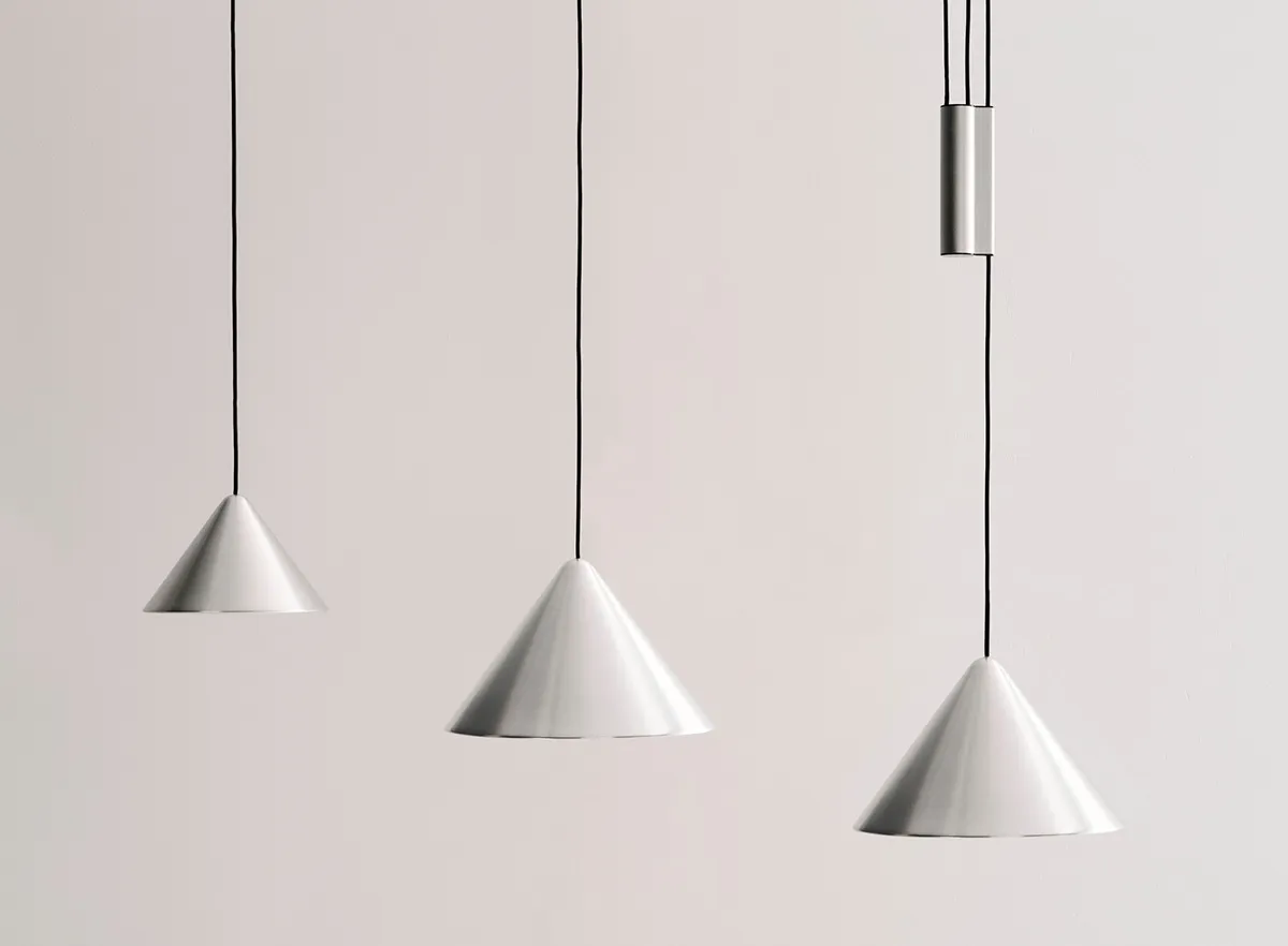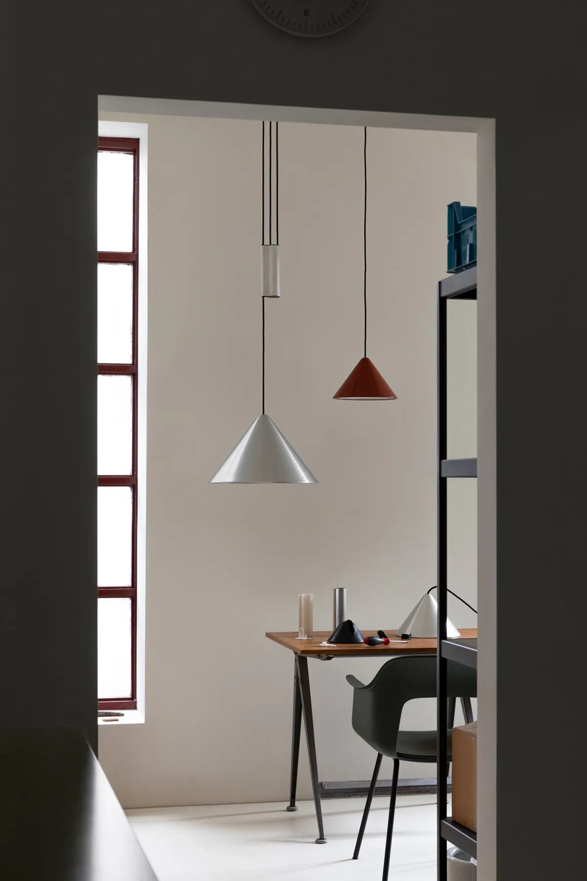 Designed by Julien Renault for HAY, Compass is a series of pendants and floor lamp typologies unified by their distinctive conical silhouette. The range includes a freestanding floor lamp with a 360-degree rotating base and extendable arm, offering a flexible alternative to ceiling fixtures while creating an elegant arched silhouette. Pendant designs include classic ceiling-hung models with a fixed cord length, alongside a height-adjustable variant featuring a counterbalanced weight. Expertly balancing form and function, Compass offers a versatile lighting solution that complements both domestic and office environments.