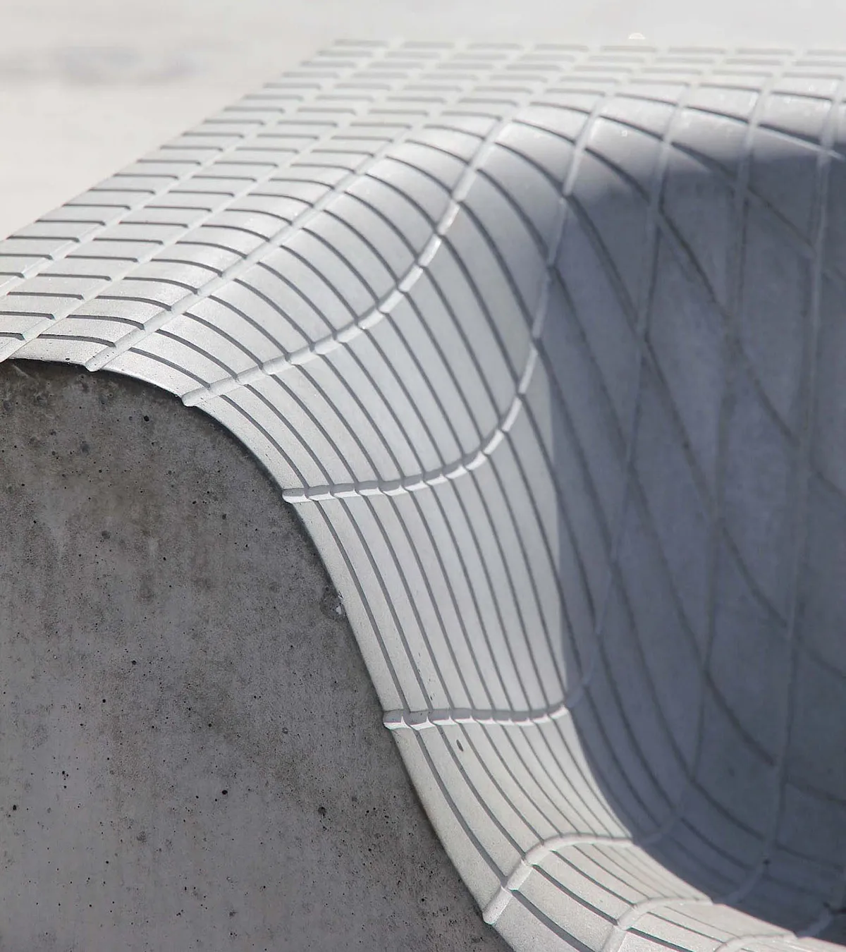 These moulded concrete seats are massive, but their sleek shapes are offset by the weightless lines of the Grid chair. The concrete is smooth and unblemished, giving way to the Grid chair’s wave-like patterns etched across their surfaces. Whether paired with the Grid chair or used on their own, these concrete designs create a striking permanent feature in any garden or terrace.