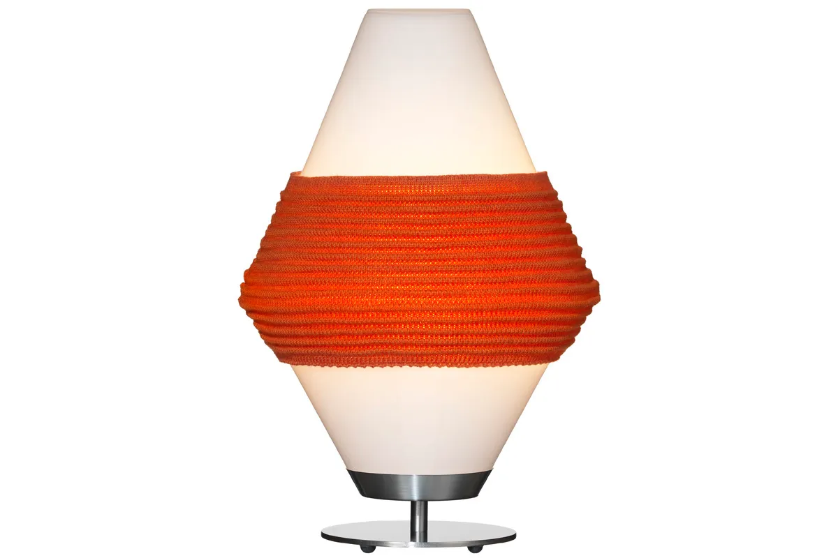 Cone was developed from the desire to combine an interesting array of materials together with light. The glossy sheen of the glass in contrast to the rib knitted textiles creates a stylistically pure electrical lighting. The use of two traditional materials gives an exciting expression in terms of shape as well as the light effect.