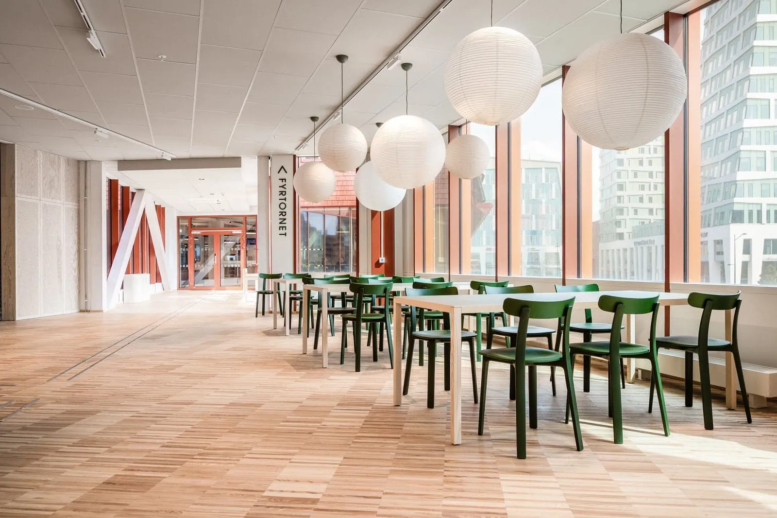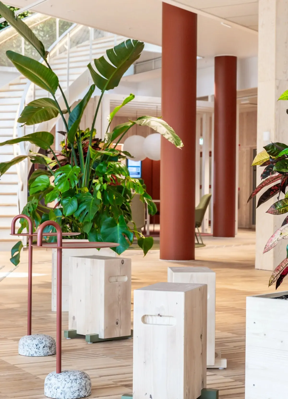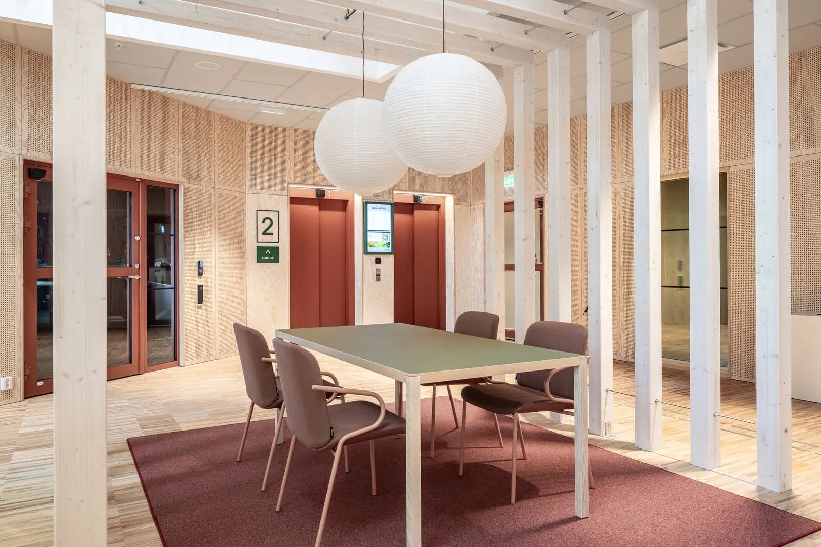 In a circular collaboration between Swedese, Granitor Properties and Addentity Interiör, old construction timber and rough CLT (Cross Laminated Timber) pieces have been transformed into furniture in Malmö’s new Embassy of Sharing district.