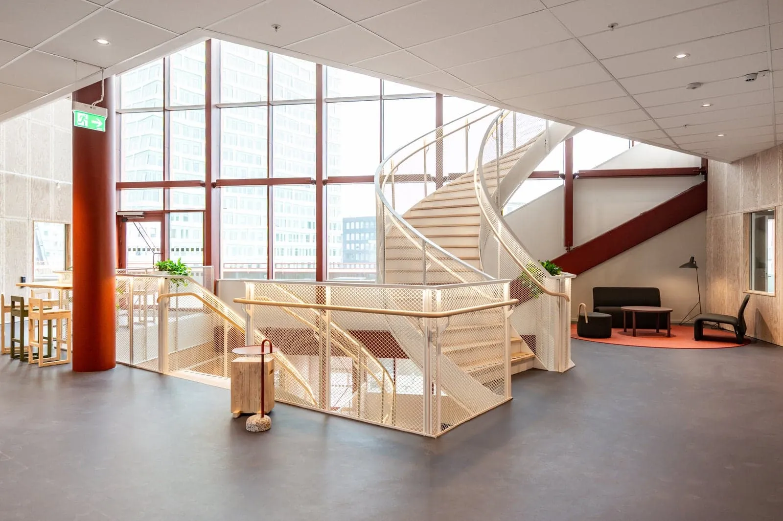 In the office building Drivbänken, the three companies used construction waste to create new furniture.
