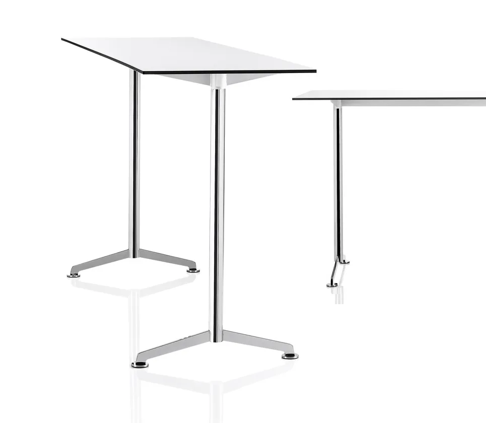 Gunilla Allard’s designs are typically strong in crossover design potential, offering elegant solutions in both residential and corporate settings. Cooper Tables are no exception, and they are often found hard at work in the office. The Cooper High Table joins this collection. Designed to be used standing up, or with a bar height stool, Cooper High brings people together in a modern mobile way.