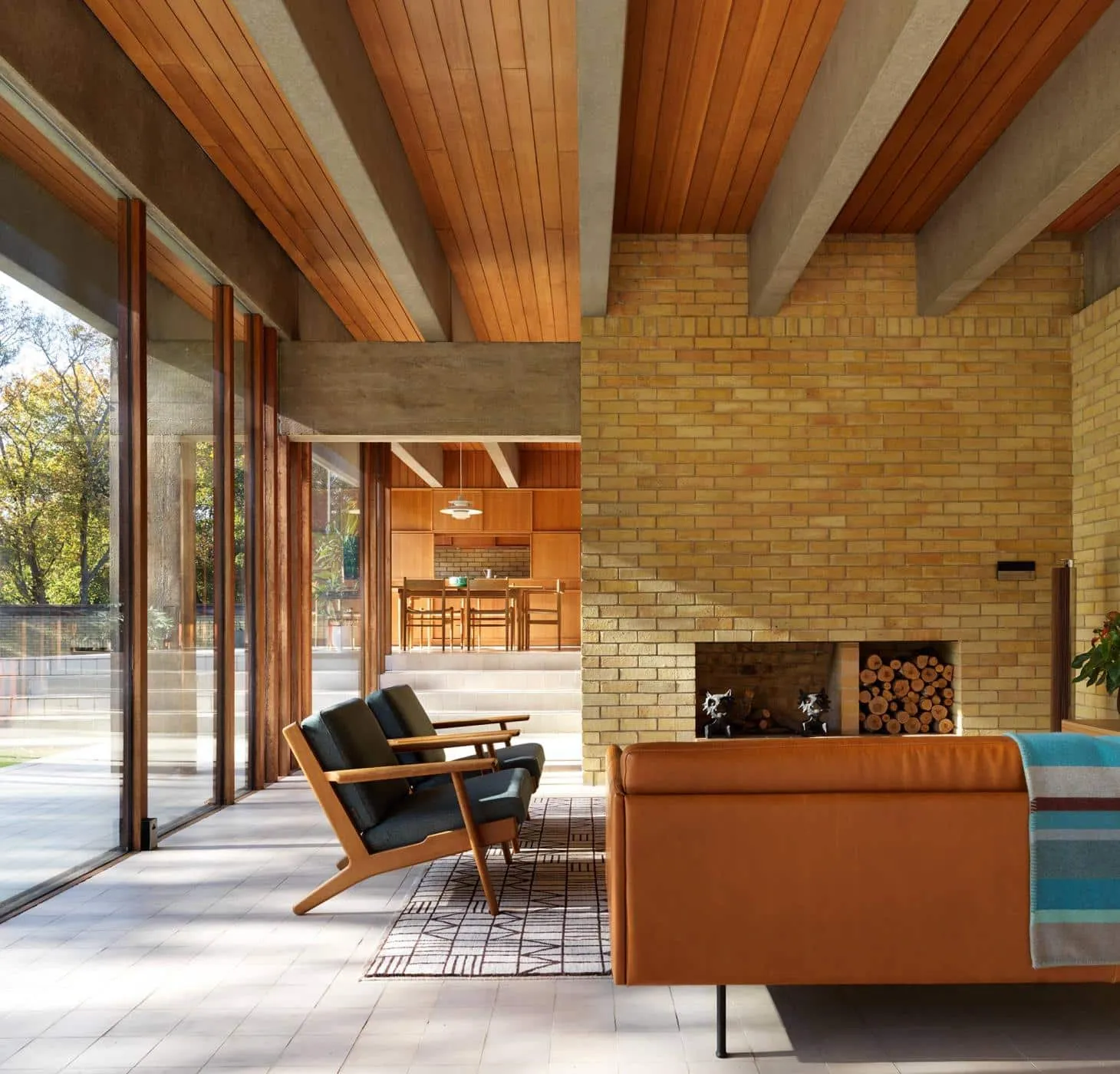 ‘We loved the character of the materials as soon as we saw the house,’ says its new owner, who shares it with her husband and their young child. ‘For us it was also about the connections to the greenery and the trees. It does feel like a secret garden.’ Having acquired the house and immersed themselves in Utzon’s history, the owners approached architecture and design studio Coppin Dockray to work on the interiors and a super-sensitive restoration. Founders Sandra Coppin and Bev Dockray have experience of heritage commissions such as apartments in Berthold Lubetkin’s 1938 Highpoint buildings in London, and a 1960s house in Wiltshire, designed by architect David Levitt for another Arup partner.