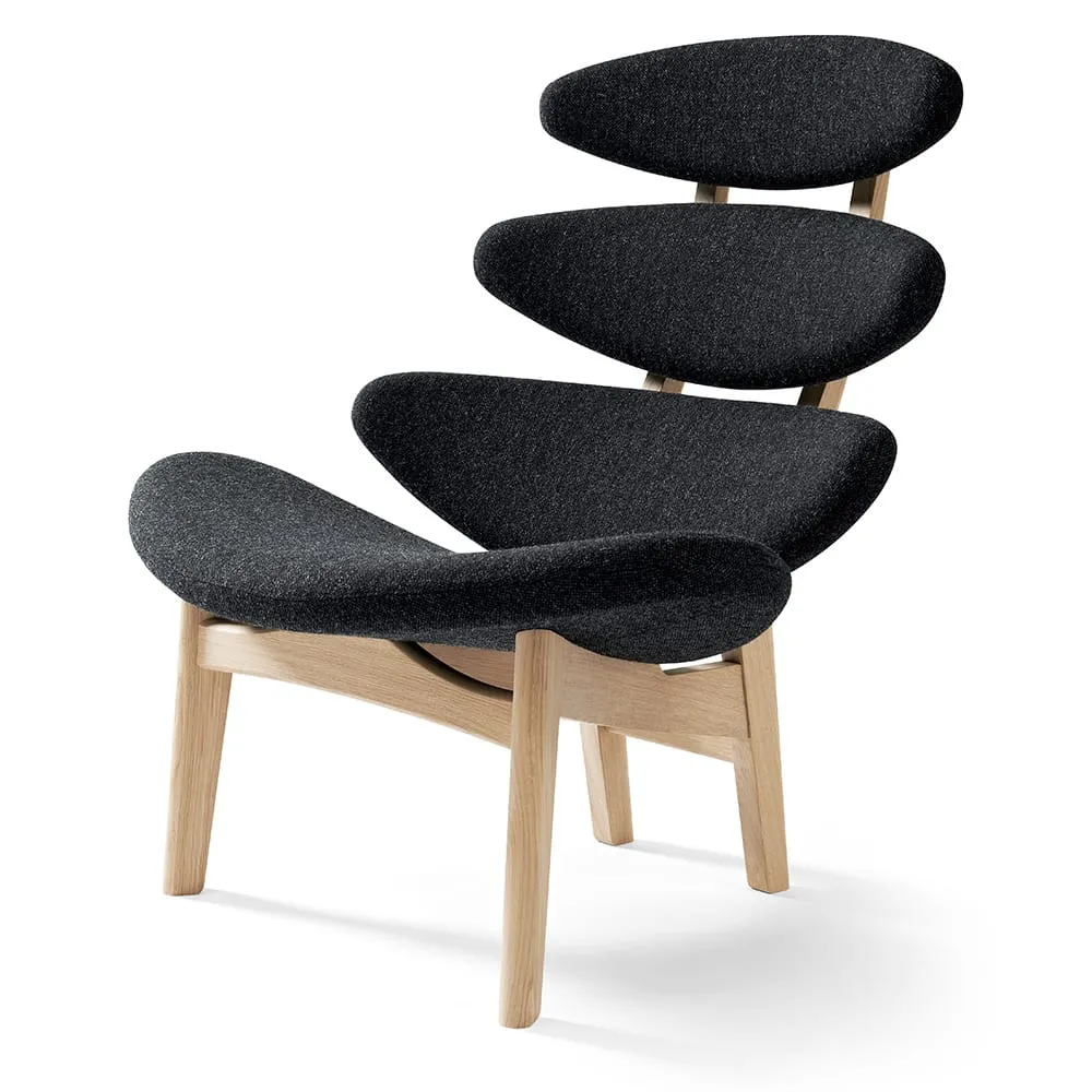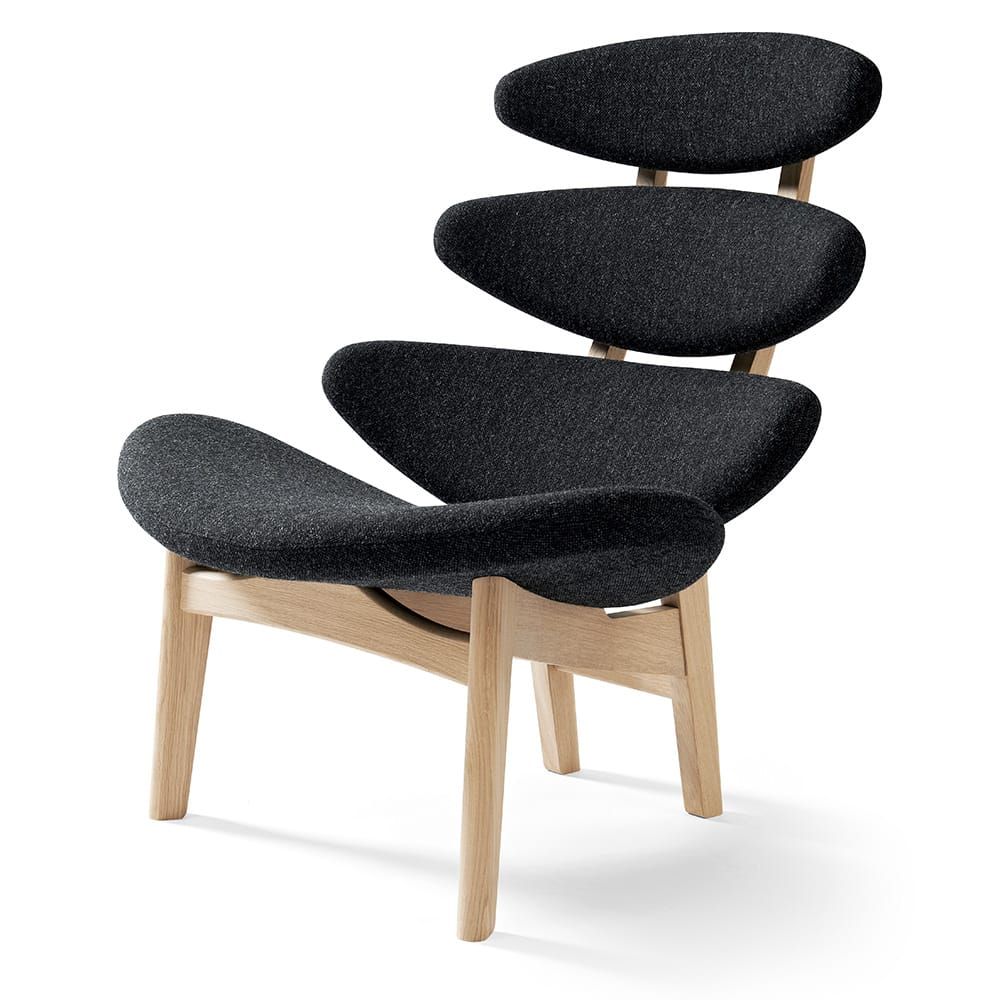 In 1964 the designer Poul M Volther and Erik Jørgensen joined forces in the creation of the “Corona” chair; inspiration to the name came from the shining ring of light when a total solar eclipse occurs. Their enthusiasm were great as it was obvious to them both that the chair had potential to become an icon. The four curved elliptical and organic seat/back cushions mounted on a beautifully (hand)crafted frame appears both semi-transparent and complete at the same time.